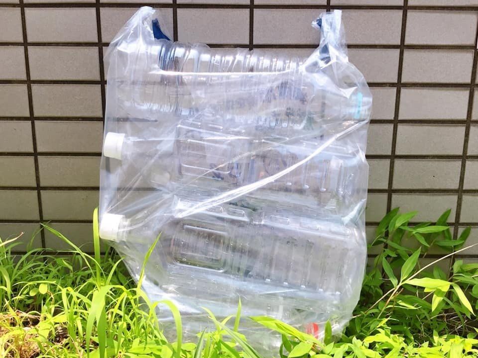 ゴミ袋があっと言う間にパンパンになってしまいがちなペットボトル。ペチャンコにすると、嵩が3分の1になりました。