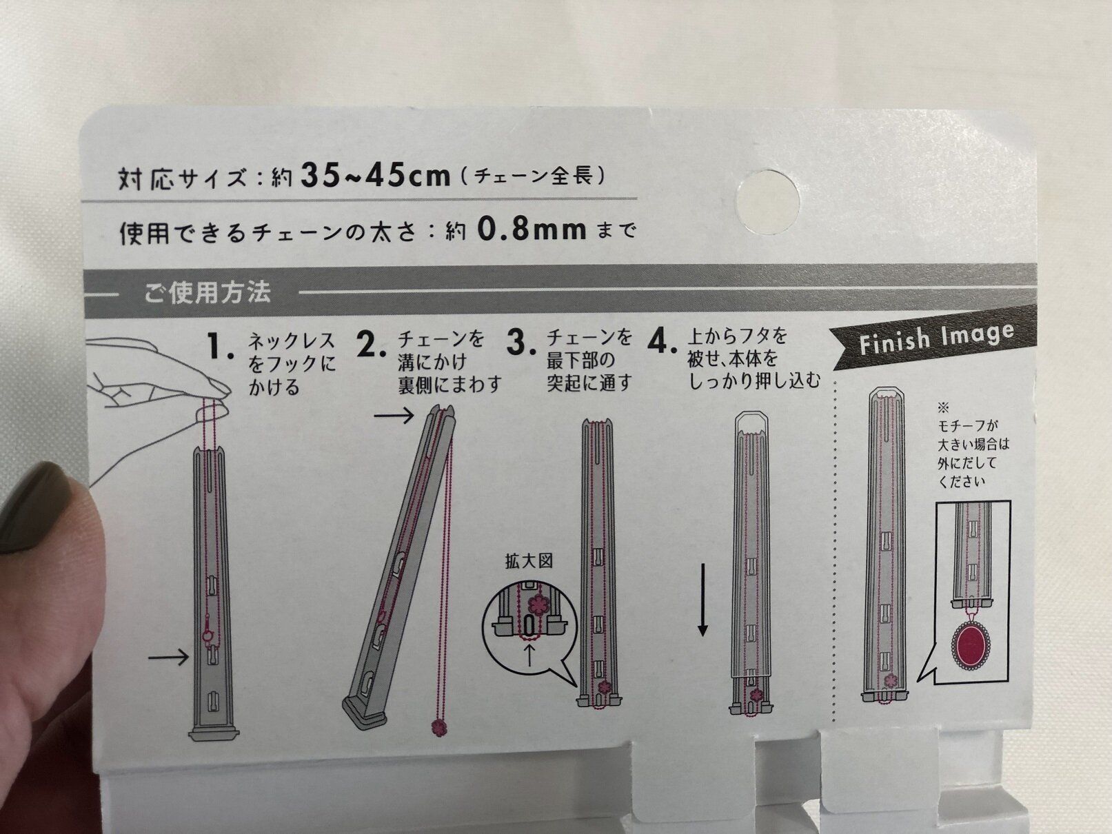 ネックレスのよっては大きなサイズのモチーフが装飾されていることもありますよね。そういった場合でも、こちらのアイテムは対応可能。