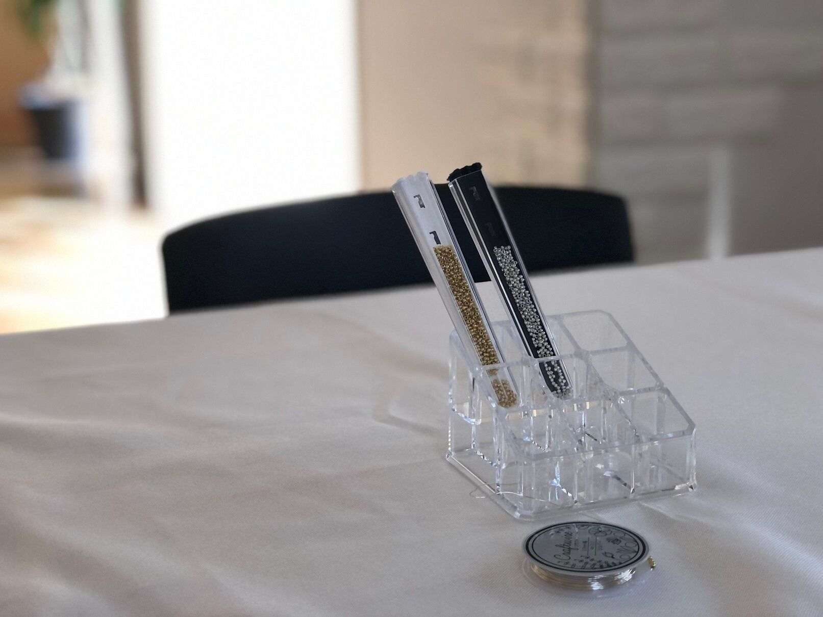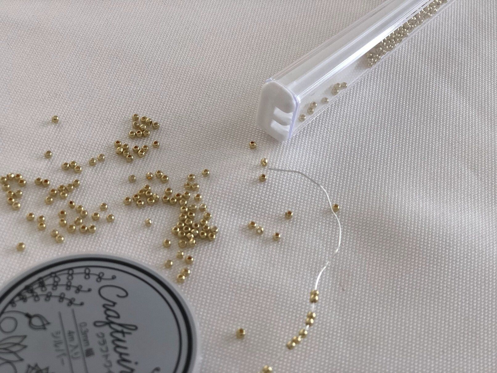 こまごました手芸用品の収納としてこまかなビーズや糸などを収納しても便利です。上部の穴から必要なぶんだけ出すことも可能。