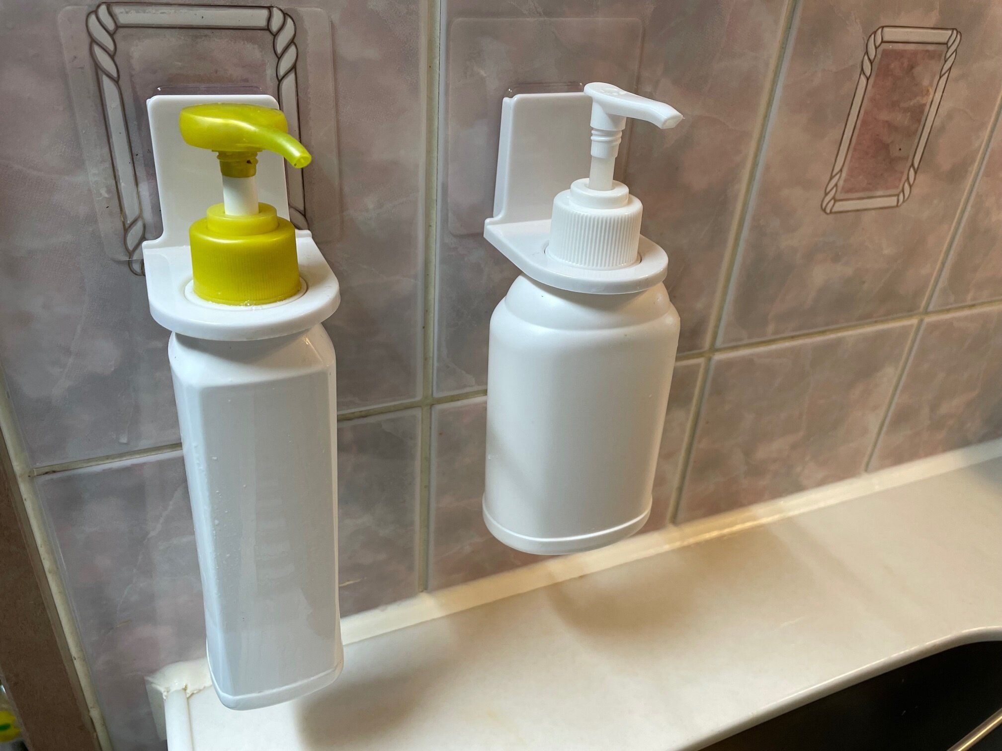 実は、ボトルを浮かせる「貼るフック」は以前にもセリアにありました。しかし、浮かせたままポンプを押すことはできないタイプだったのです。