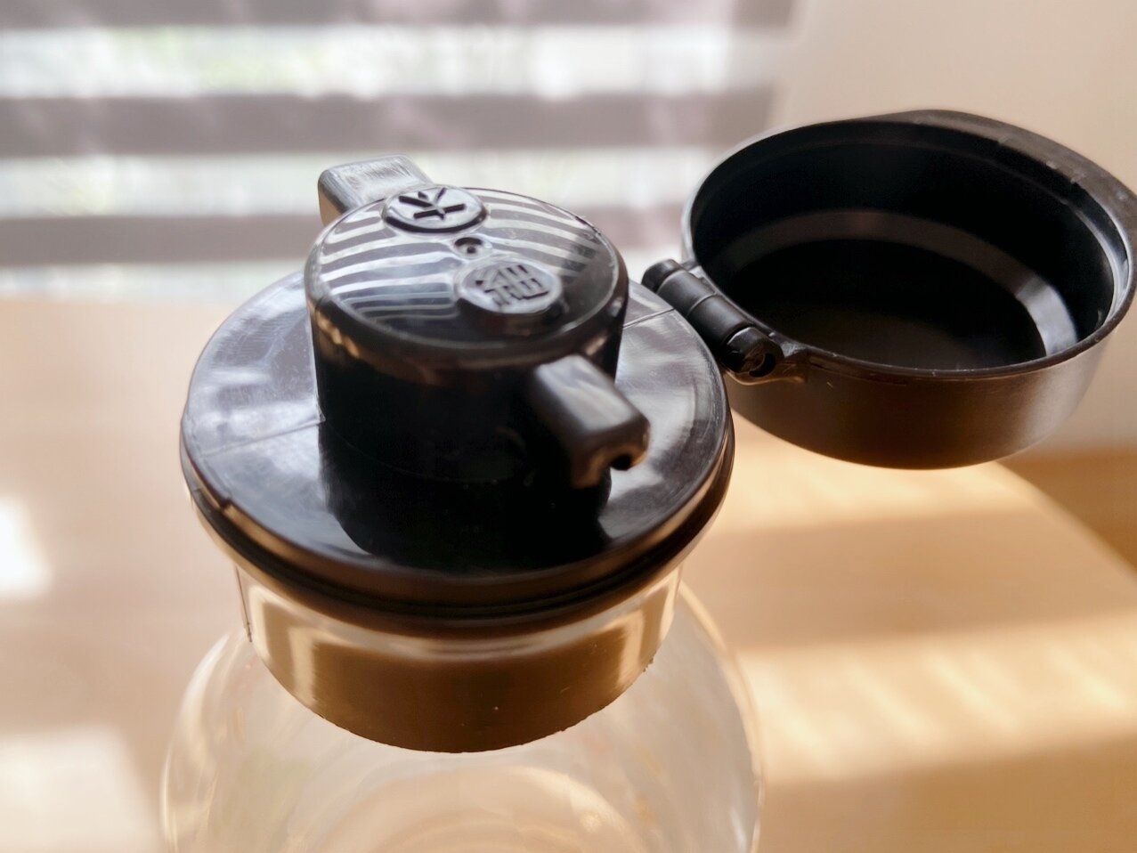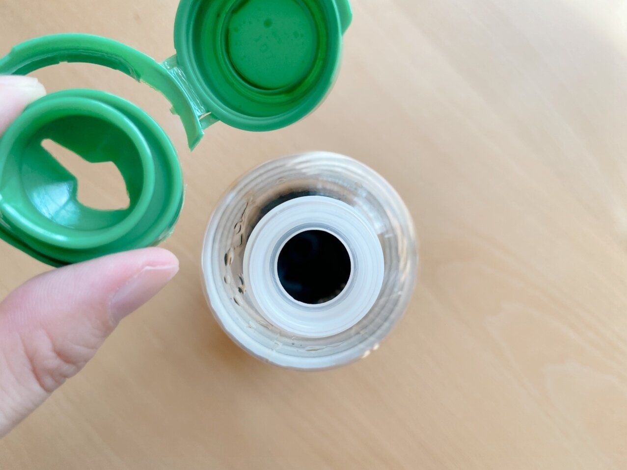 ふたが取り外せるボトルの場合は、本体を取りつけるだけ。ふたと栓が一体型のボトルの場合は、取りつけキャップを押しはめてから本体を取りつけます。