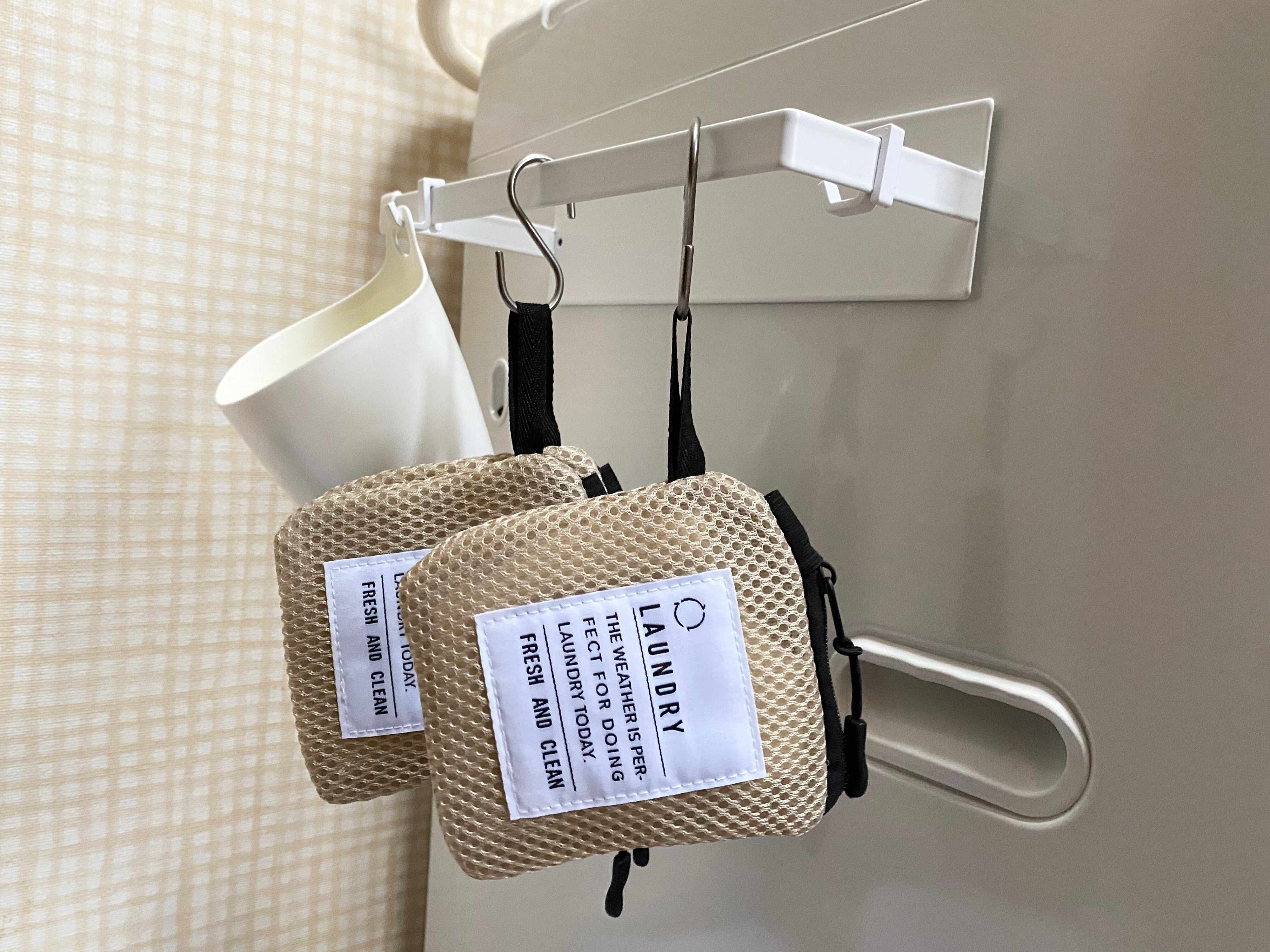使用しないときは洗濯機近くの見えるところに置いておくのがベスト。洗濯機のマグネットハンガーにS字フックでこのミニネットをかけておき、すぐに使えるようにしておくと、小さなもののお洗濯の作業効率も上がります。