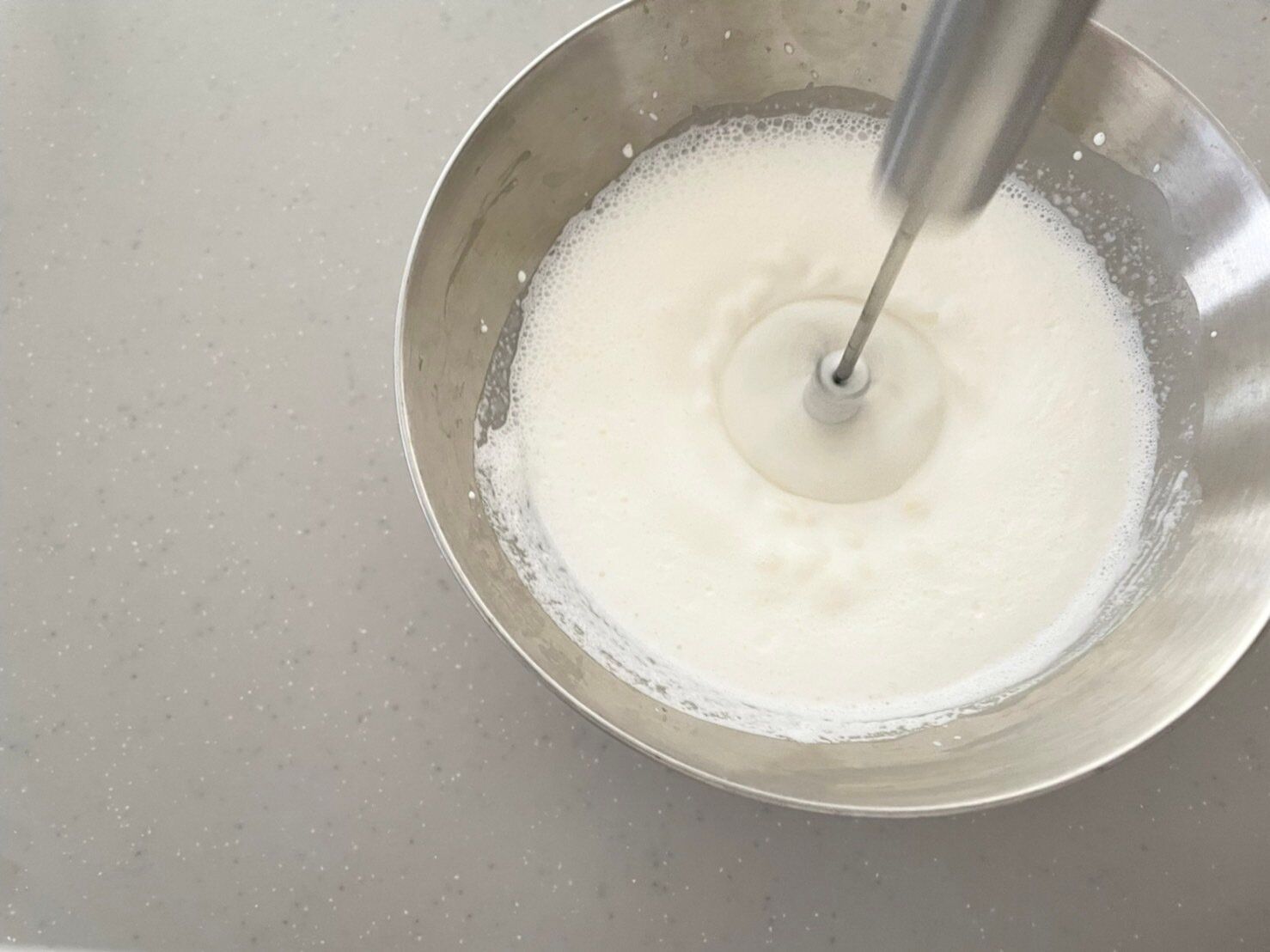 生クリームは2分でふんわりとした泡には仕上がりましたが、さすがにツノが立つまでは難しそうです。例えば、お子さまと一緒にお菓子作りをするときなどに楽しく使うのには良さそうです。