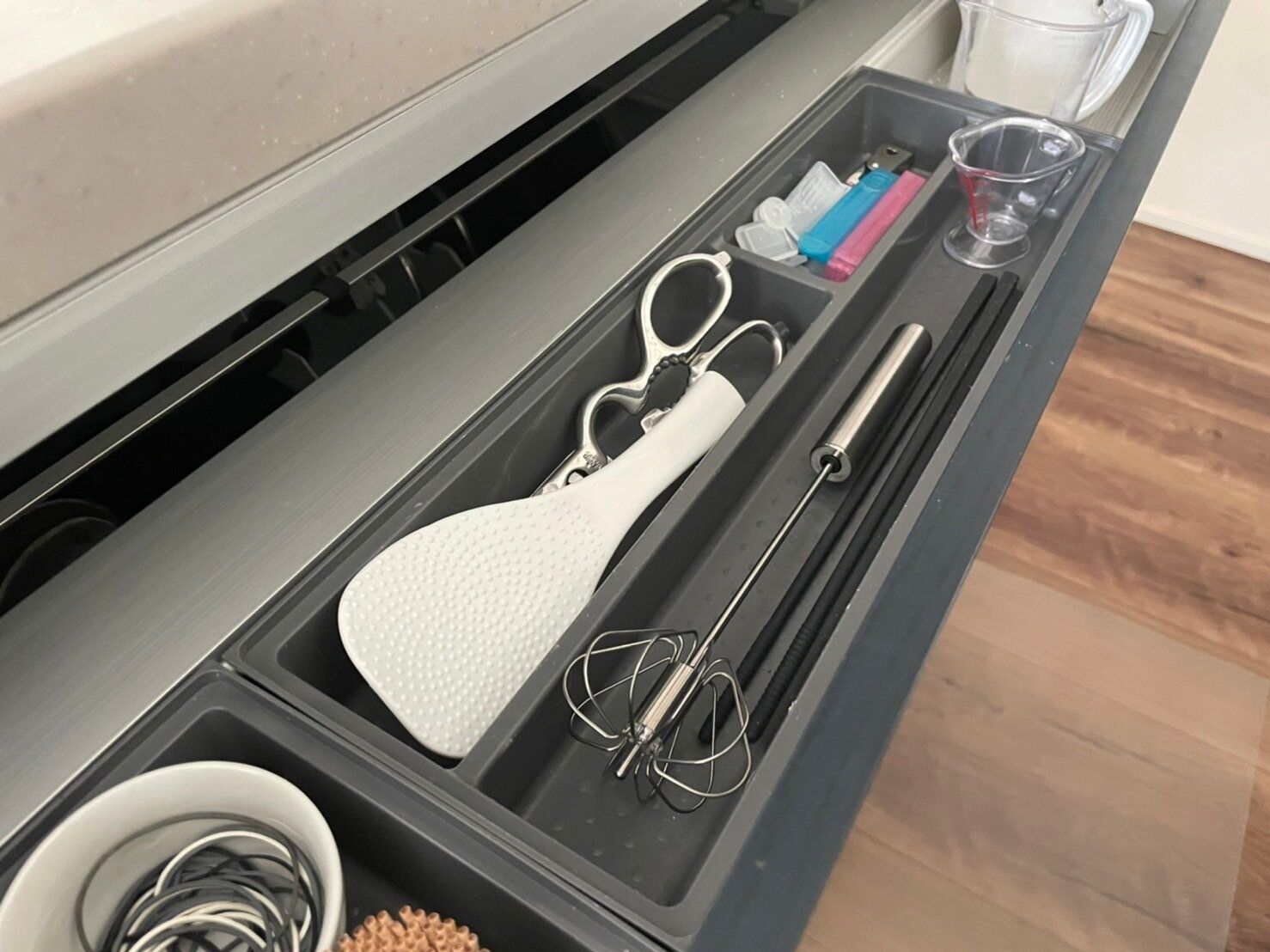 コンパクトなのでキッチン収納で場所を取らず、すっきりと収まります。