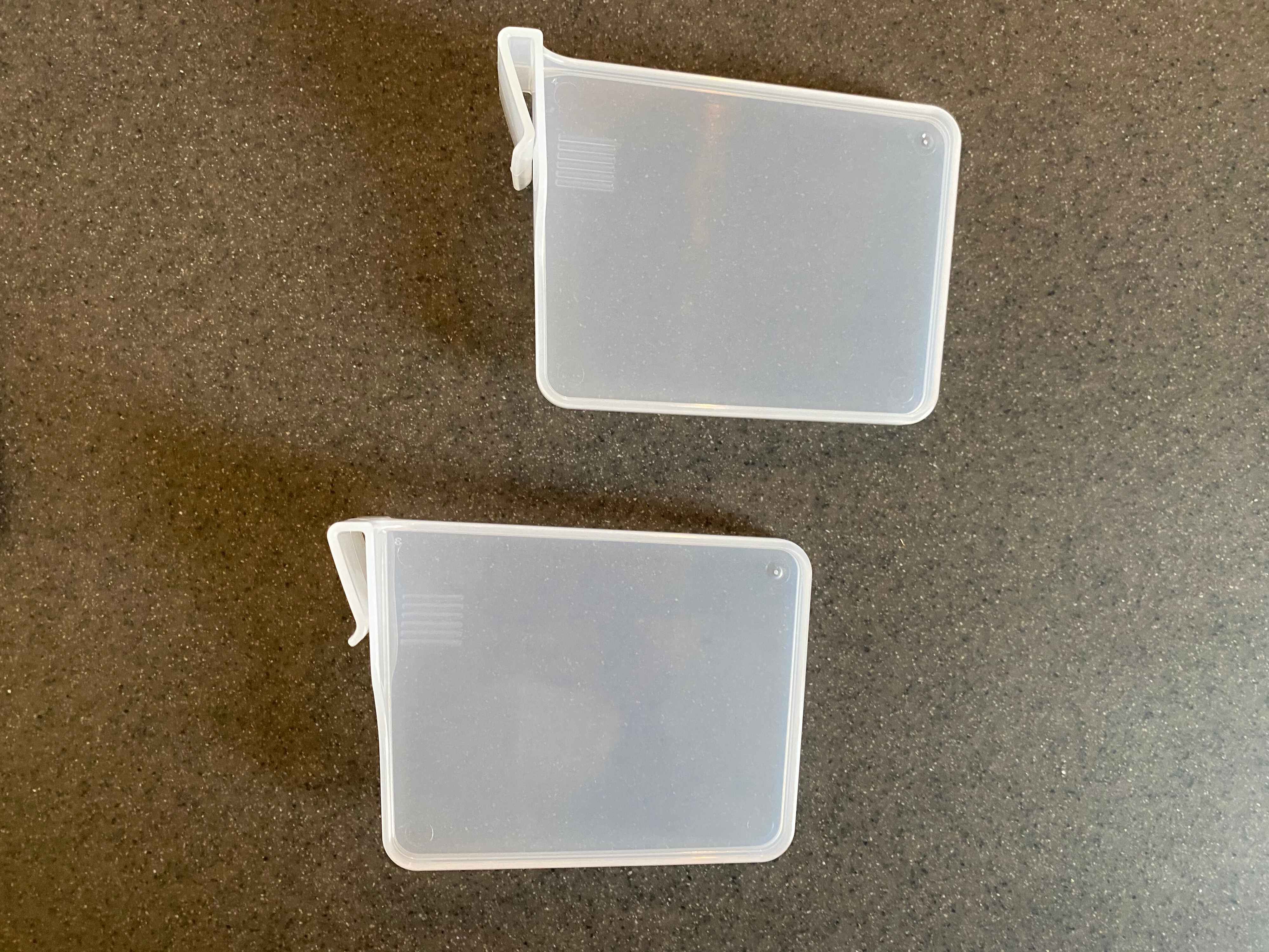 今回ご紹介するのはセリアで購入した「バスケット用仕切り」です。価格は税込み110円。仕切り板のサイズは3.2 ×10.7×7.7cmで、2枚入り。板の上部にある突起部分を、バスケットのフチに引っかけて使います。2つあるので、両方使えばバスケット内を3つの空間に仕切ることが可能ですよ。