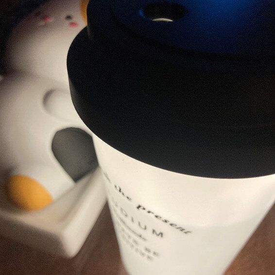 500円の「ミニ加湿器(コーヒーカップ)」は、おしゃれなカフェで買ってきたコーヒーカップのような加湿器で、USB電源を使います。電源ボタンは2段階になっていて、ワンタッチで加湿され、長押しするとオレンジ色のライトが点灯。安全面にも考慮されていて、水がなくなるか、4時間経過すると自動で電源オフになります。インテリアとしても、とてもおすすめです。