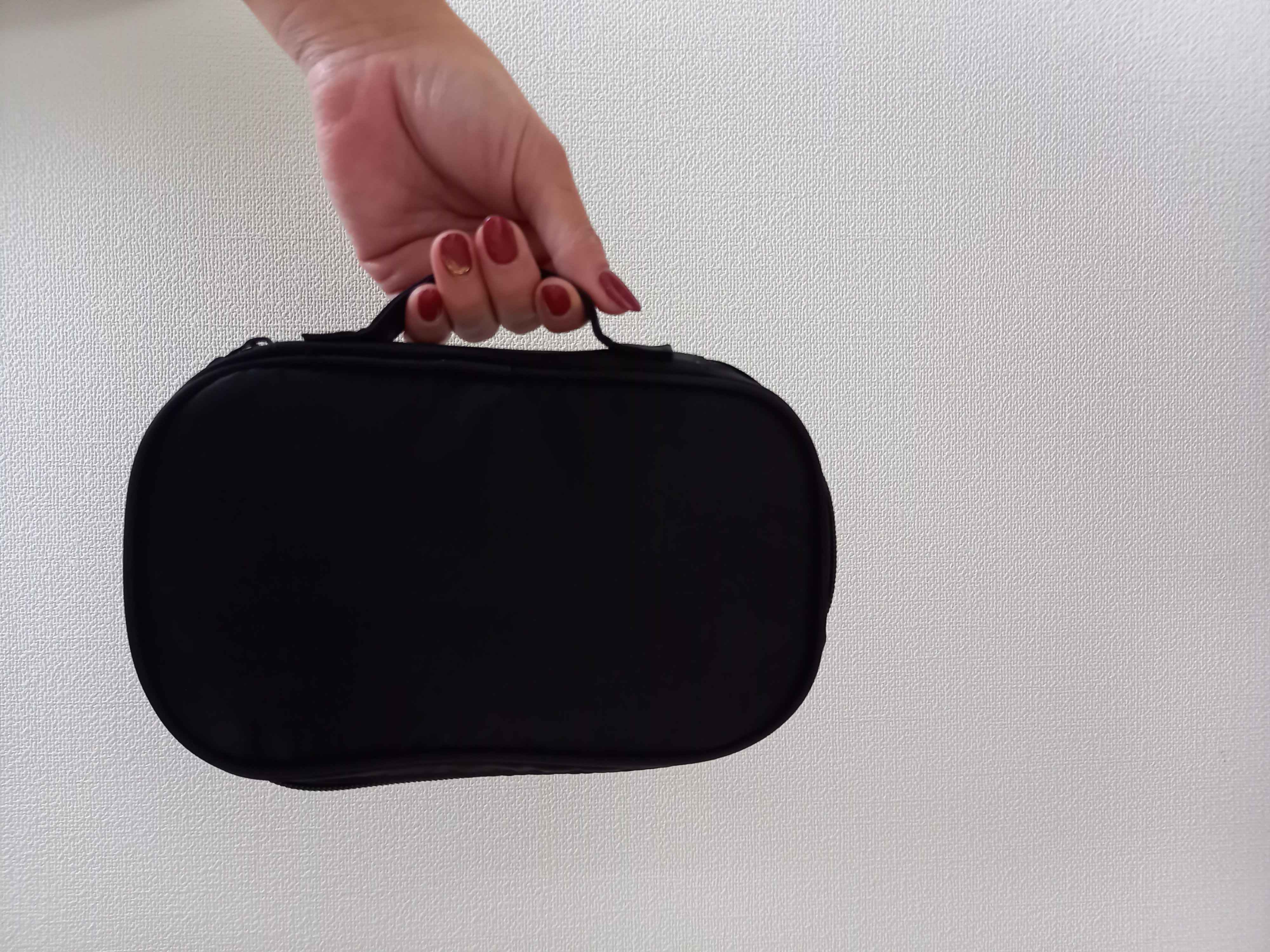 柄の長いブラシやペンシル型のアイメイク、幅のあるビューラーもしっかり収まります。ナイロン、ポリエステル素材なので、汚れてもサッと拭き取れ衛生的に使えますね。