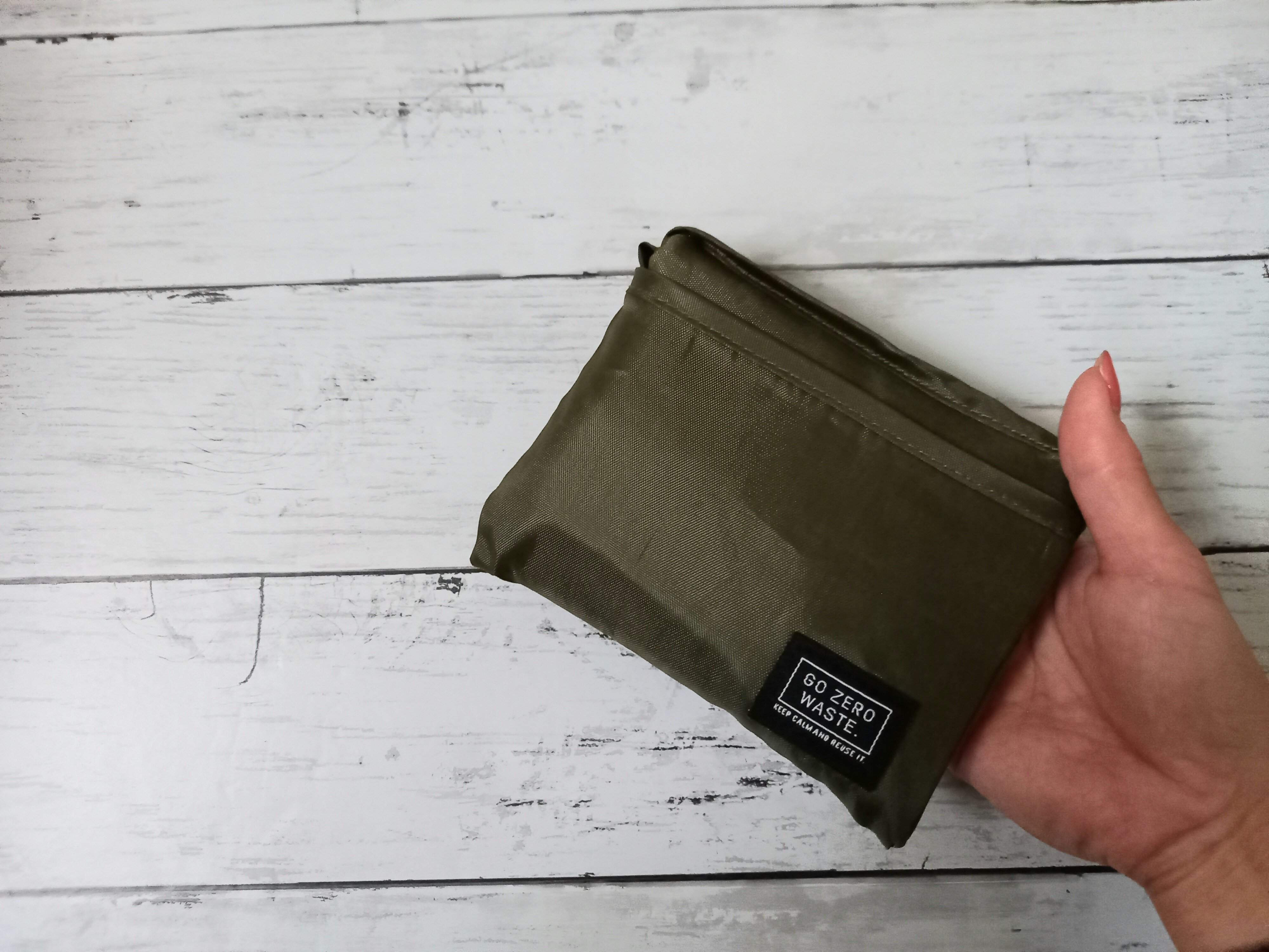 コンビニなど、ちょっとしたお買い物にオススメのエコバッグには、手のひらサイズでコンパクトなこちらがオススメ!カラーは、カーキとブラックの2カラー。