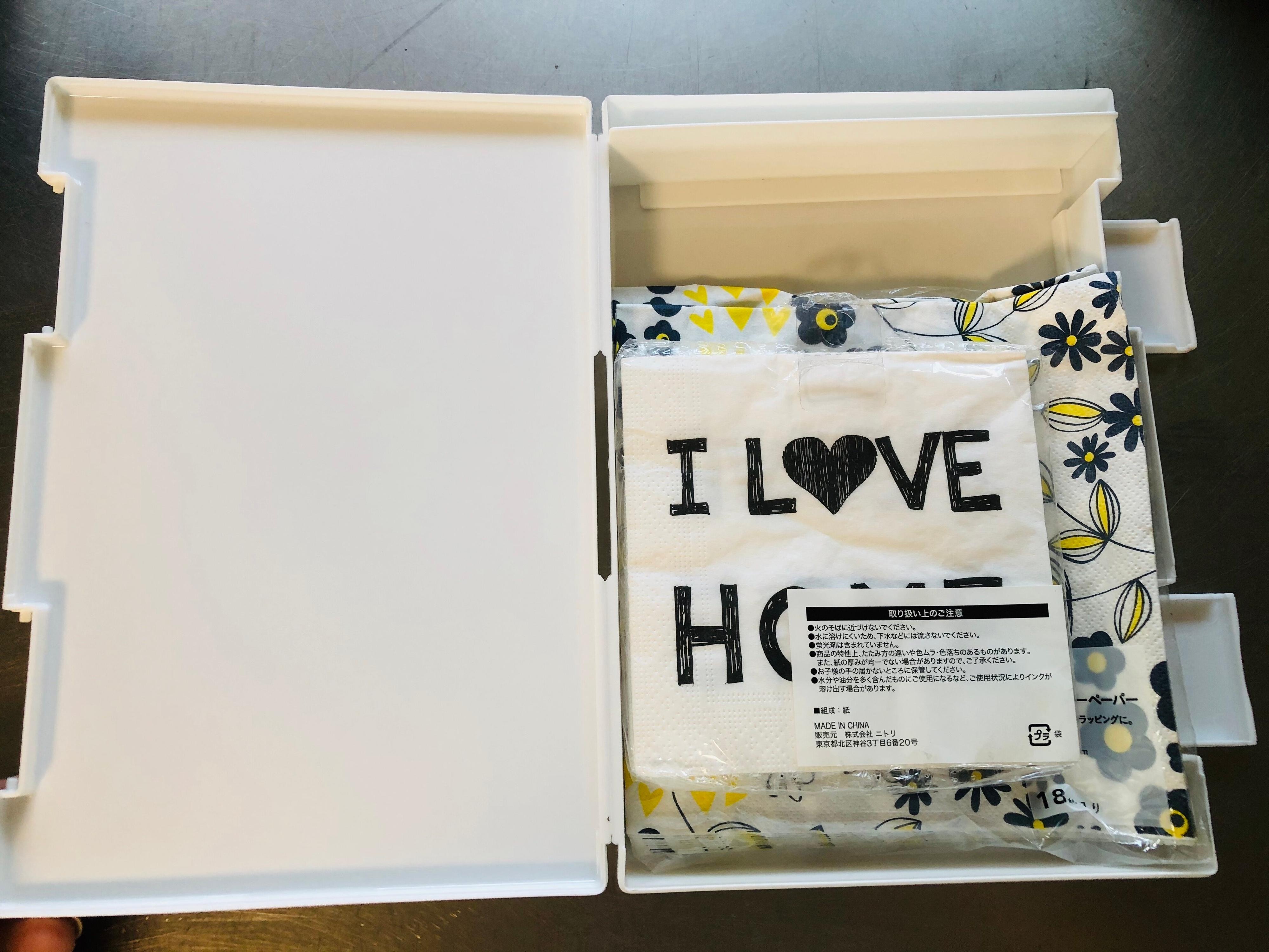 形や素材がバラバラなものでもスッキリ収納できて、在庫管理もしやすくなります。お弁当グッズも埃が入らず衛生的です。朝の忙しいお弁当づくりも、すぐ手に取れる場所にあると時短に繋がります。
