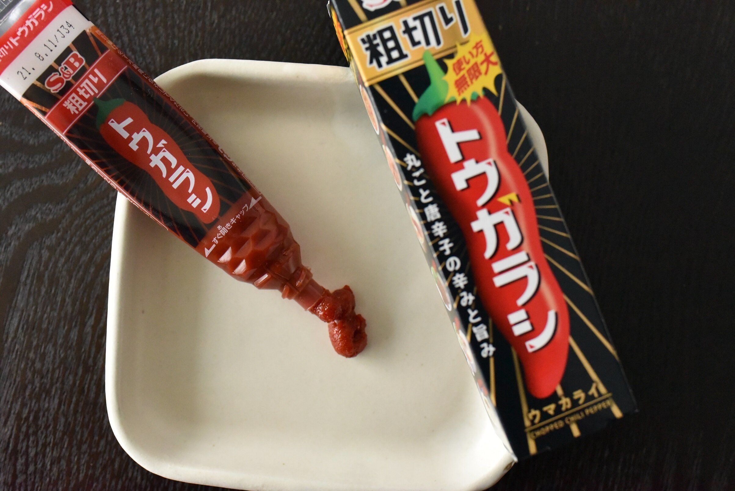 チューブ式なので、使いたい分だけ簡単に出せるのもいいです。ワサビやからしなどの定番チューブ商品といっしょに冷蔵庫の定番調味料になりそうです。