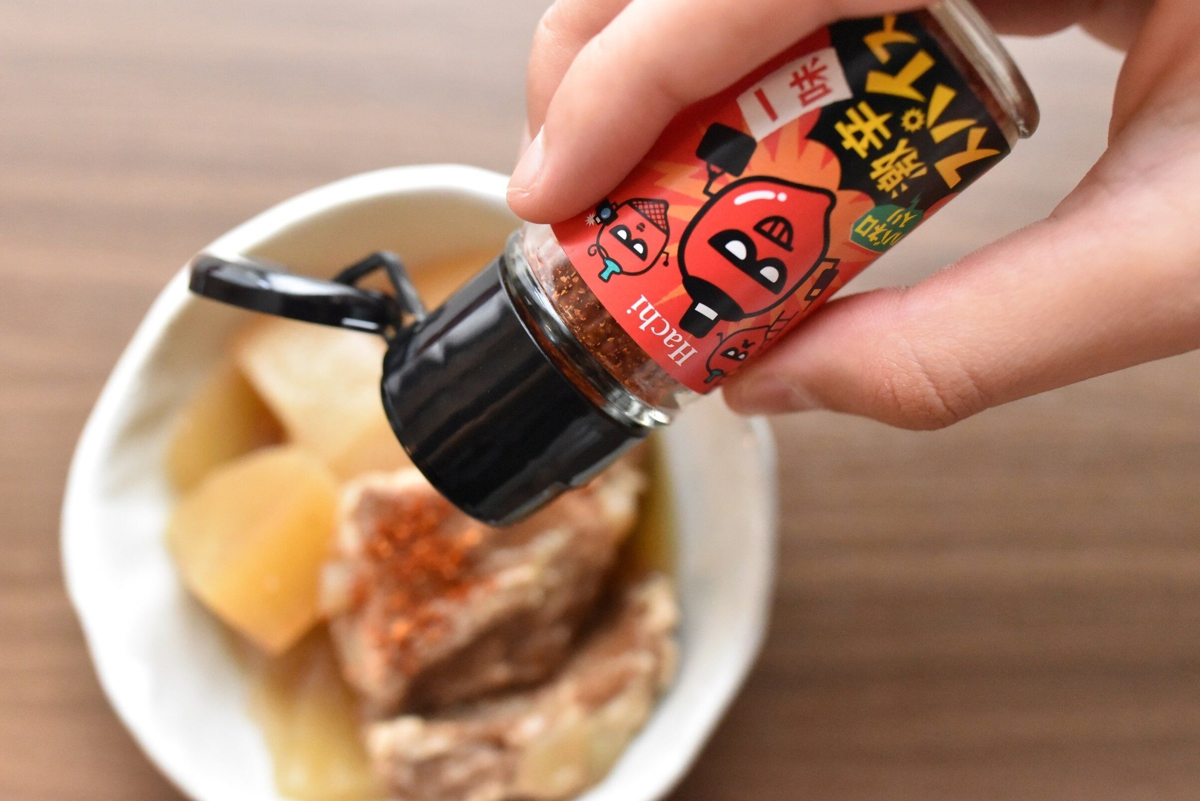 ハチ食品のハバネロ入り激辛スパイス一味は、パッケージデザインから想像してしまうほどの激辛ではなく、普通の一味よりもほんの少し辛いのかな?程度の辛さです。