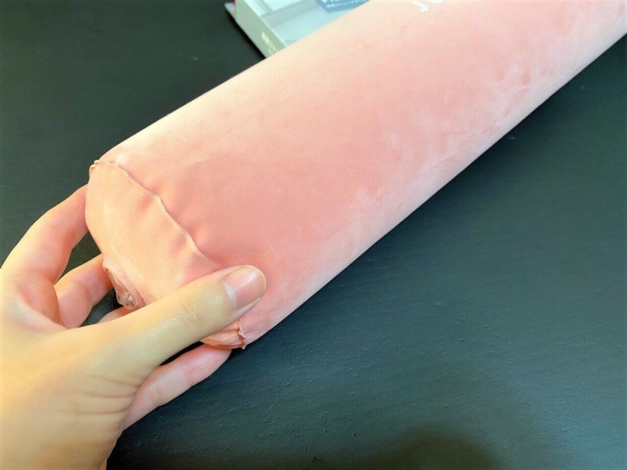 実際にふくらませてみるとこんな感じ。直径約10cm×長さ36cmとコンパクトです。