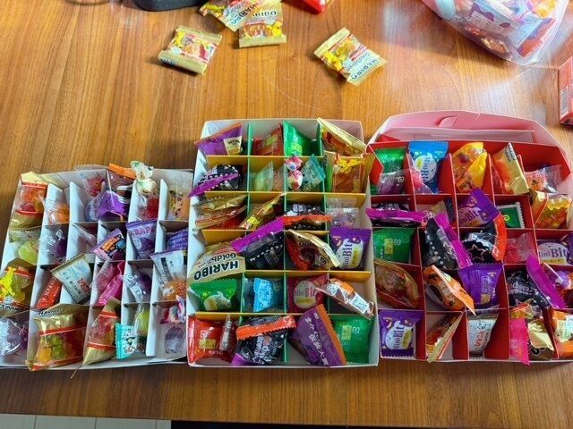 お菓子を詰めたら完成!何種類も用意したので開けるときの楽しみがあります。