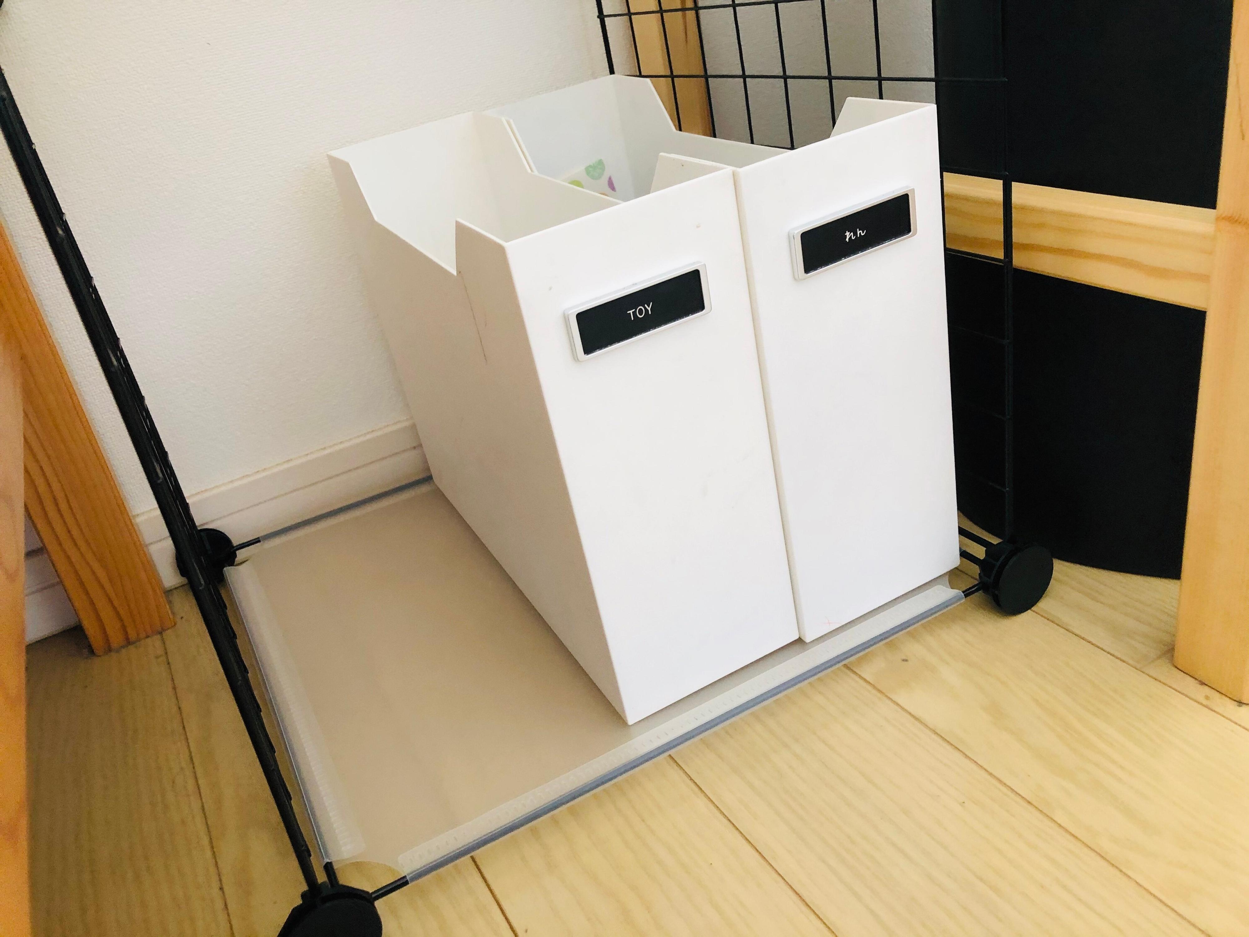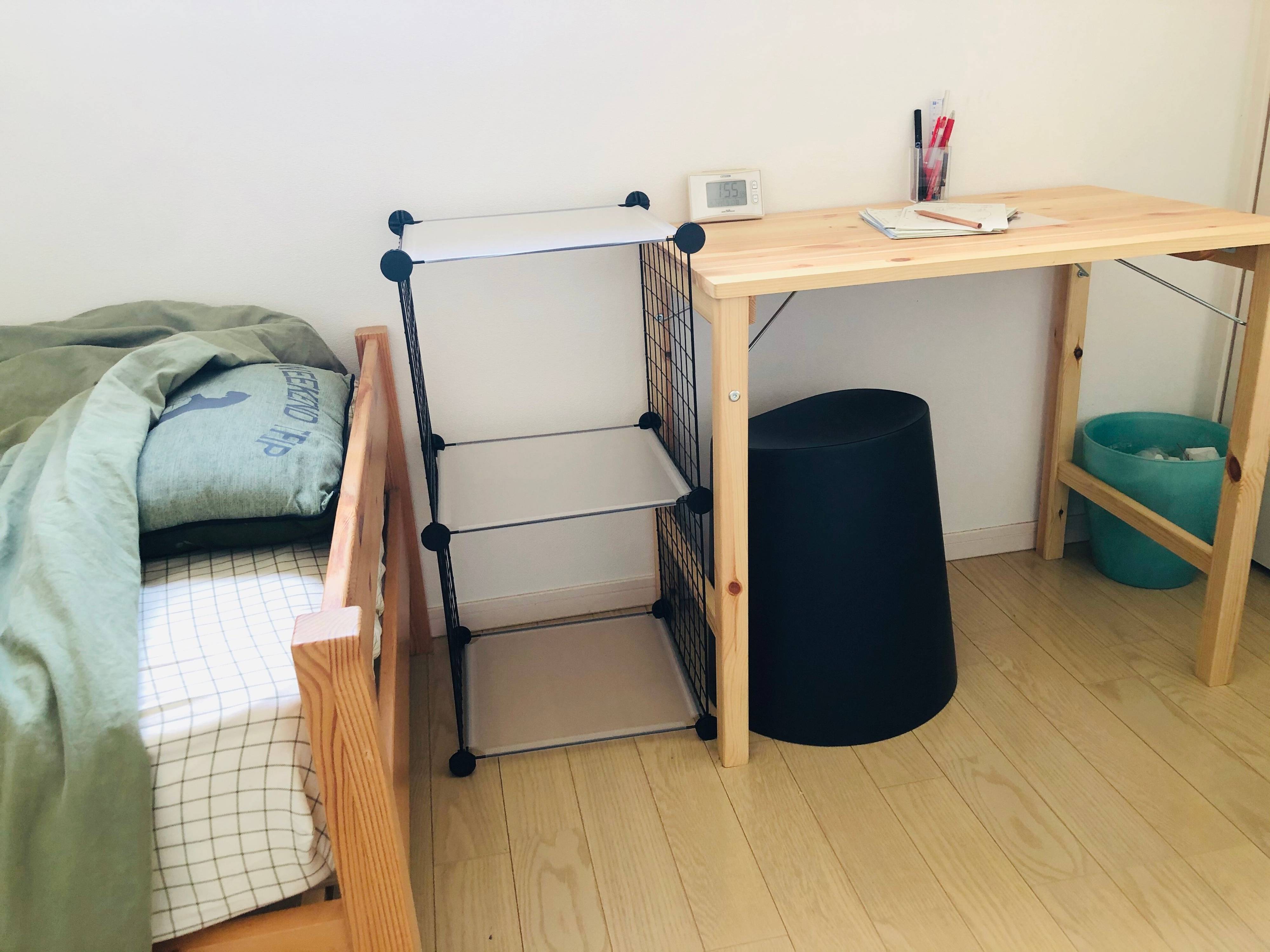 小学生の部屋では2段に組みたて、下段はファイルボックスにおもちゃなどをざっくり入れてみました。