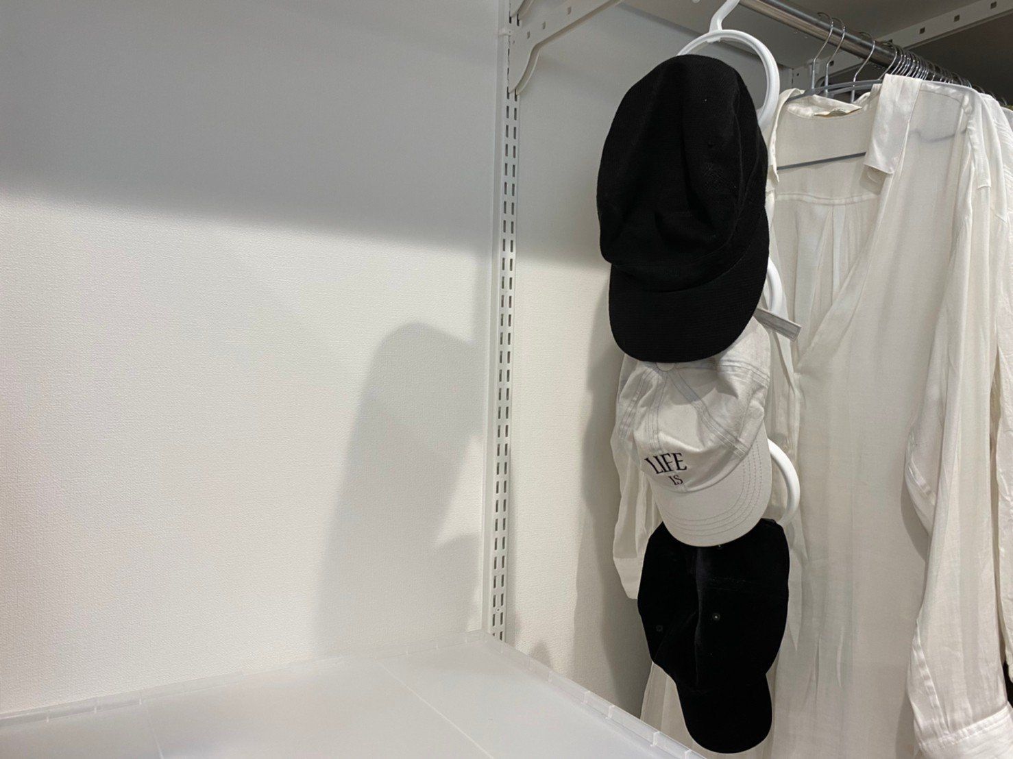 ニットの伸びやすい物など柔らかい素材以外は型崩れも気にならずにしかも見やすく収納できるので、その日のお洋服などに合わせて好きな帽子が選びやすくなります。
