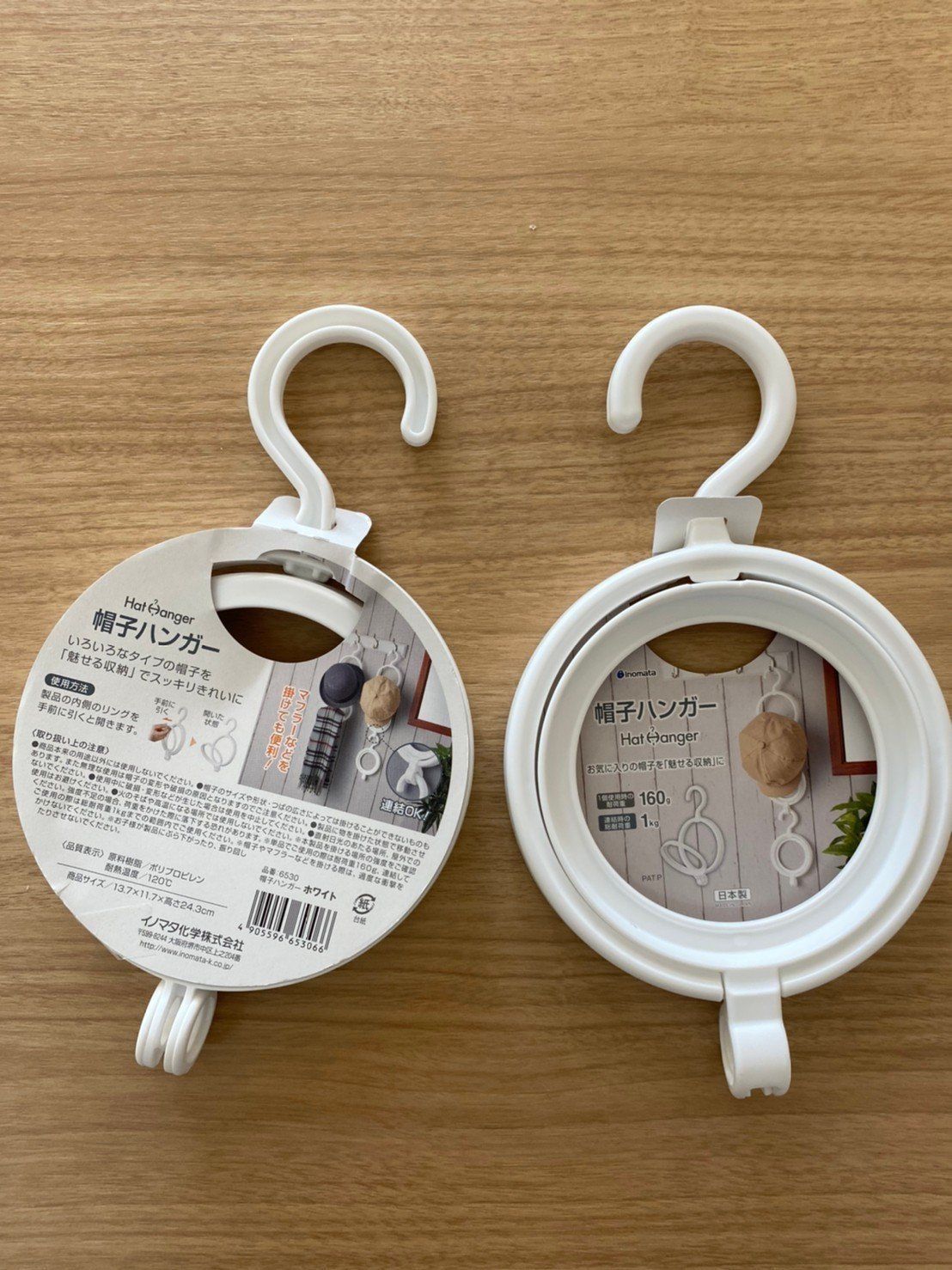 今回ご紹介する「帽子ハンガー」。丸いフォルムがかわいいデザインで、価格は100円。筆者はダイソーで購入をしました。ちなみにこちらの商品は、連結ができるというこで3つ購入しました。