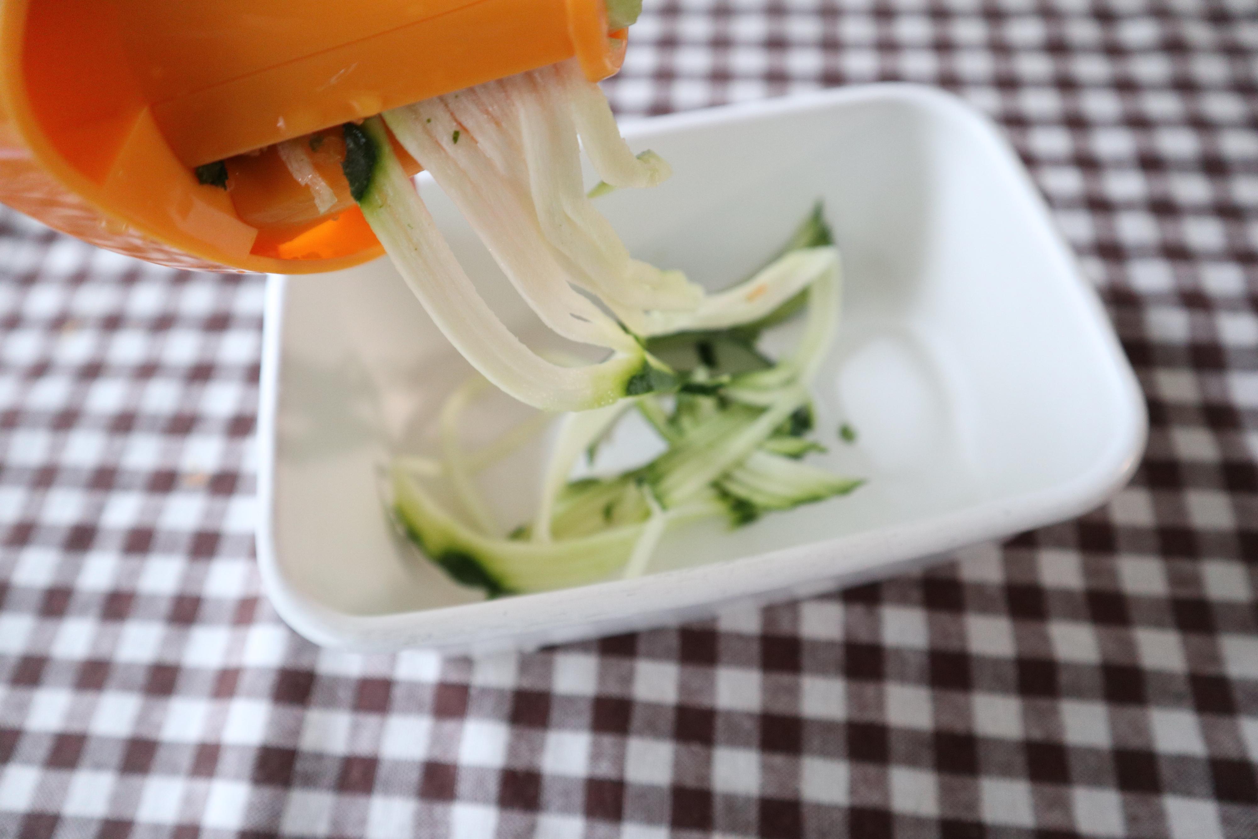 ズッキーニを使ってみたところ、太さも均一で長い野菜ヌードルができました。力もそこまで必要なくてつくりやすかったです。