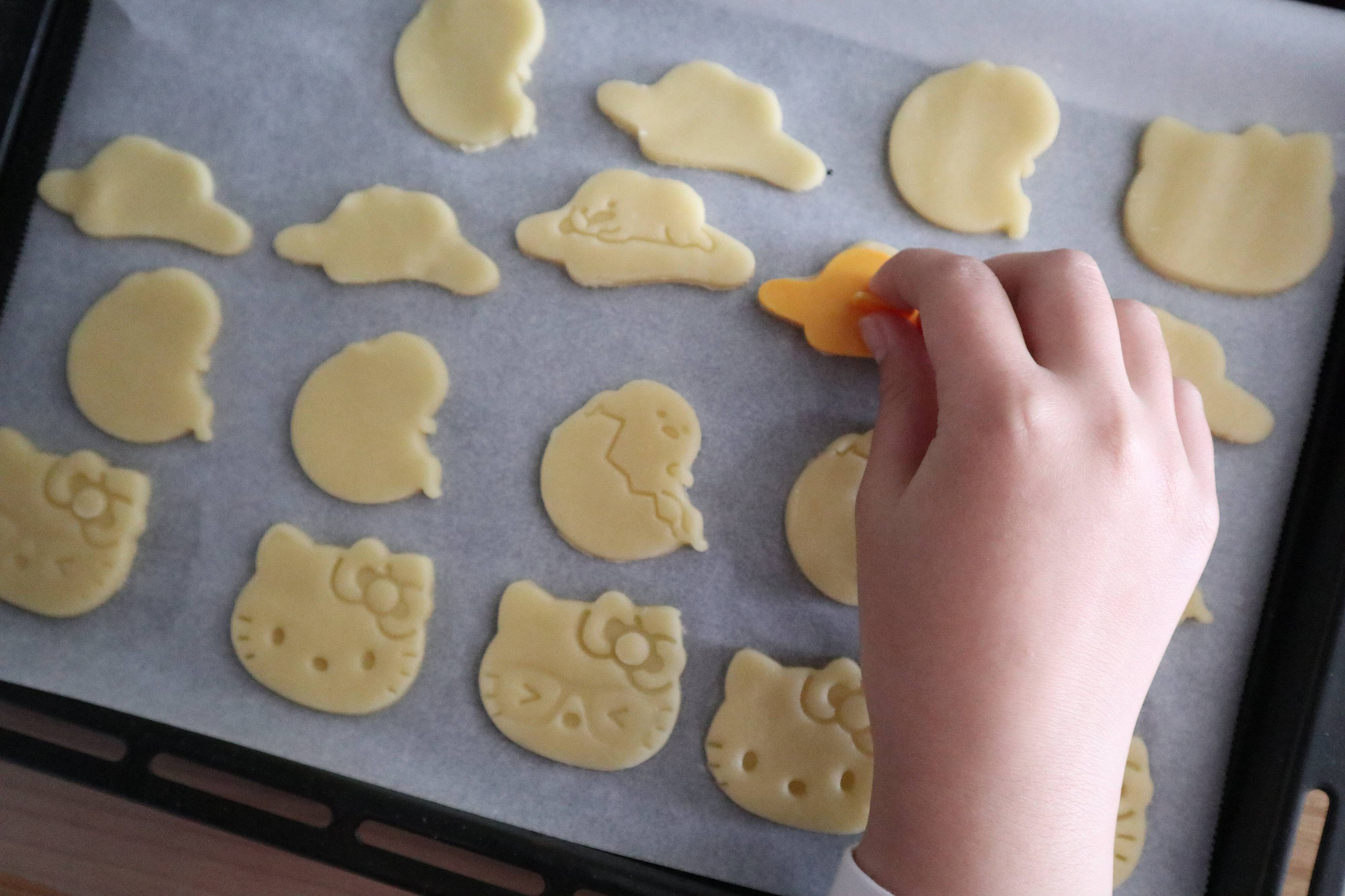 クッキー生地を型で抜いて、スタンプを押せばあっという間にキャラクターに!