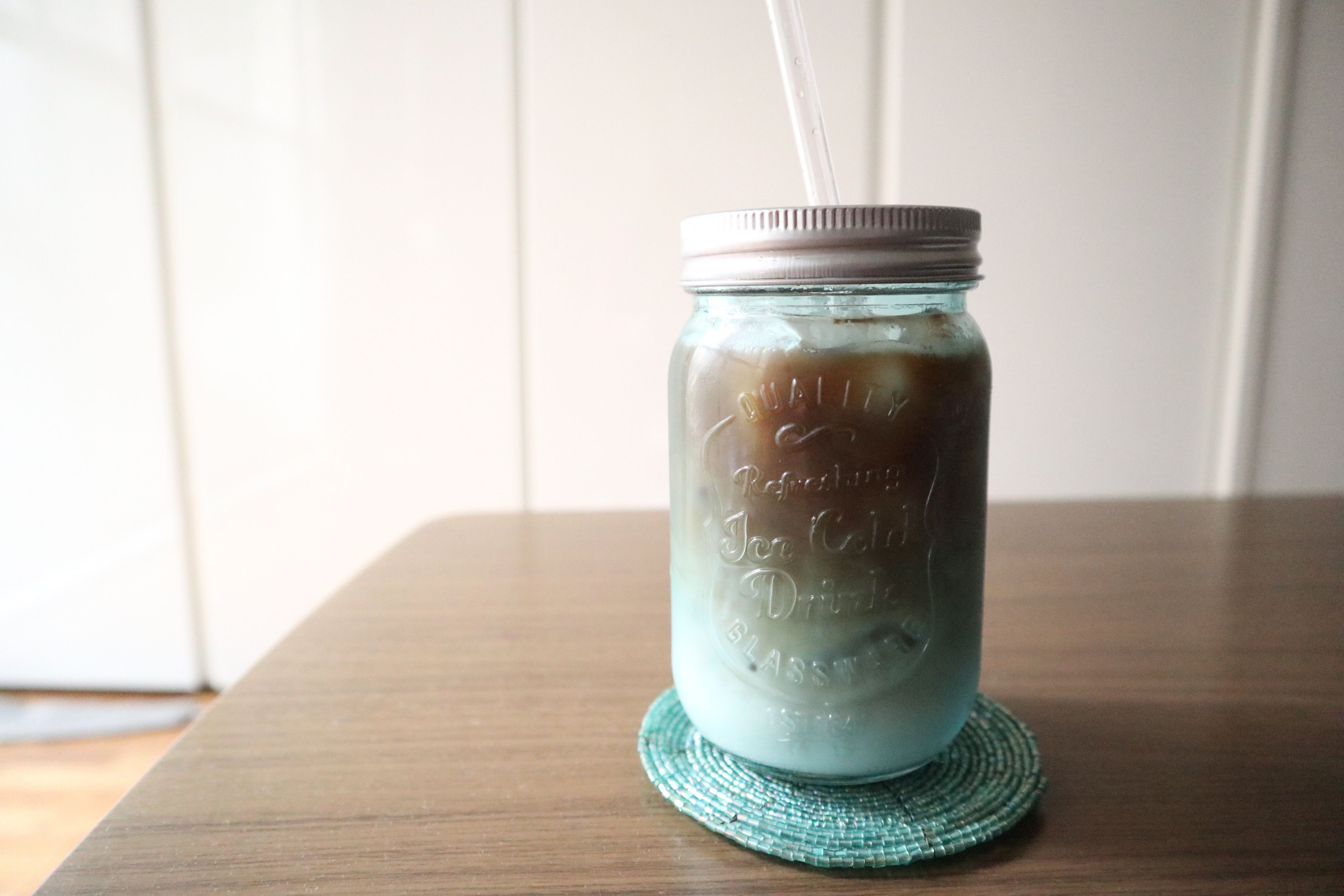 メイソンジャーでツートンコーヒーをいれるとおうちカフェもお外風になってちょっぴり特別な気持ちに。おうちで過ごすひと時がよりいいものになります。
