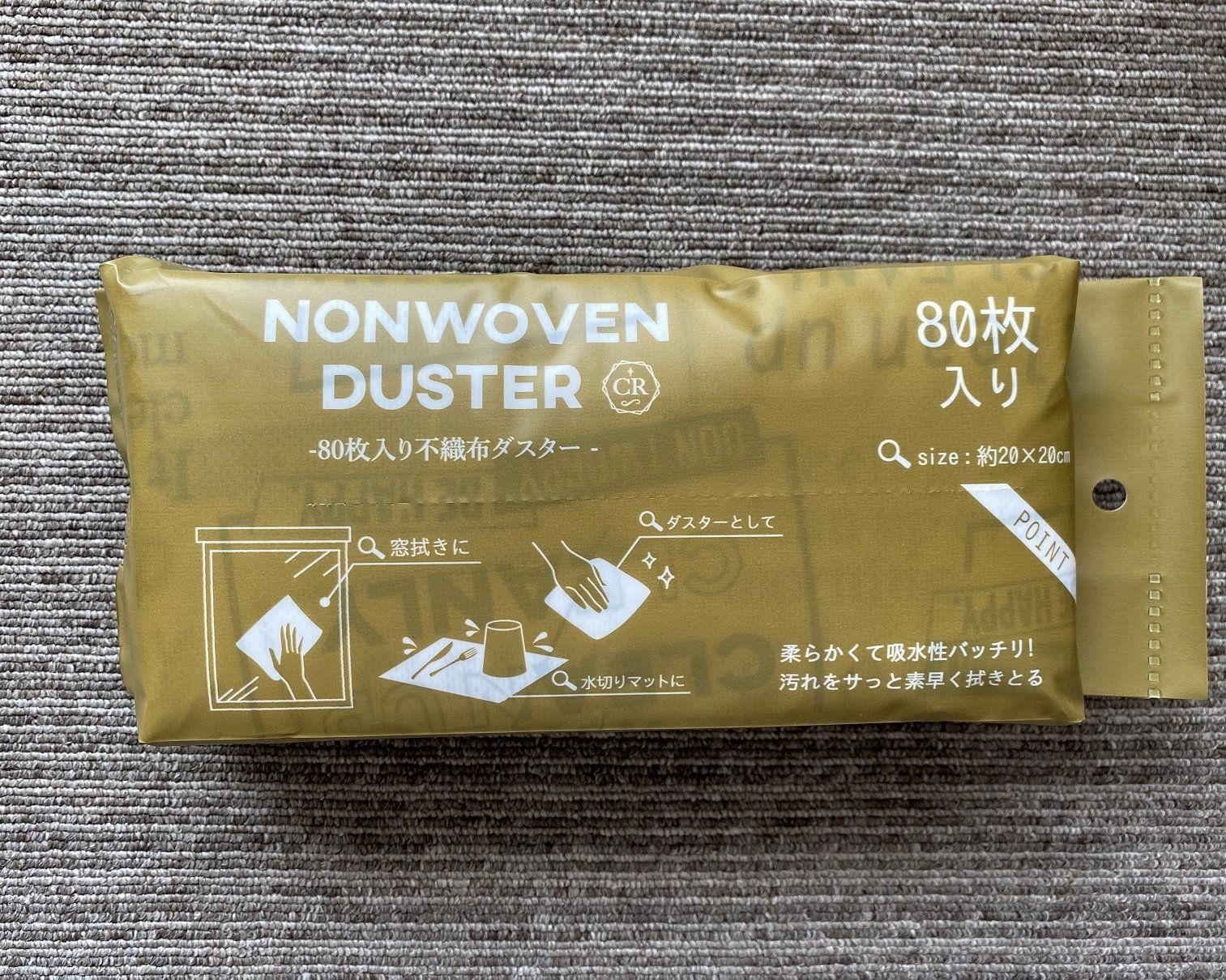最後にご紹介するのは、ダスターです。不織布のダスターは100円ショップでも買えますが、スリーコインズのダスターは80枚入り&コンパクトなサイズ感が特徴。