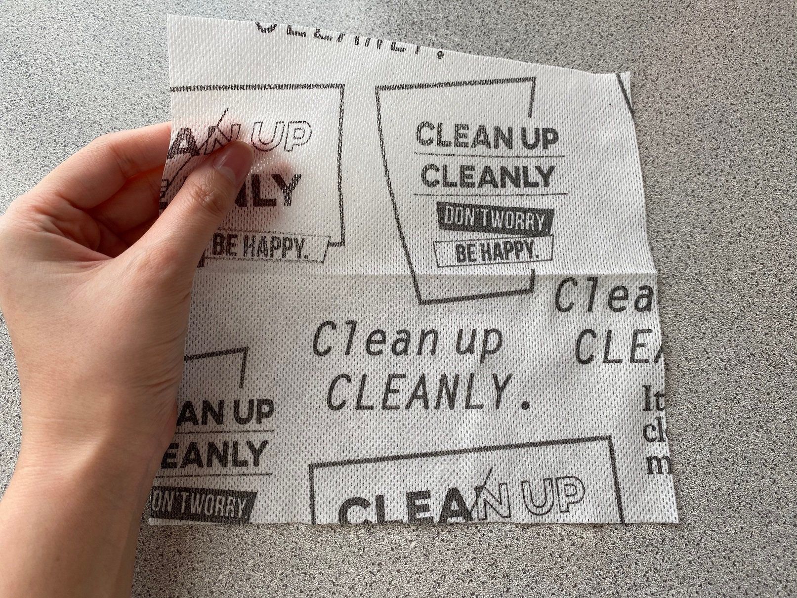 20×20cmなので広げても手のひらに乗るサイズです。食器拭きはもちろん、食卓でお皿の下に敷いたり、お子さんの手拭きに使ったりと、いろいろと便利な活用ができます。ちょこっと掃除にも使えるので、キッチンの引き出しに常備しておくのがおすすめです。