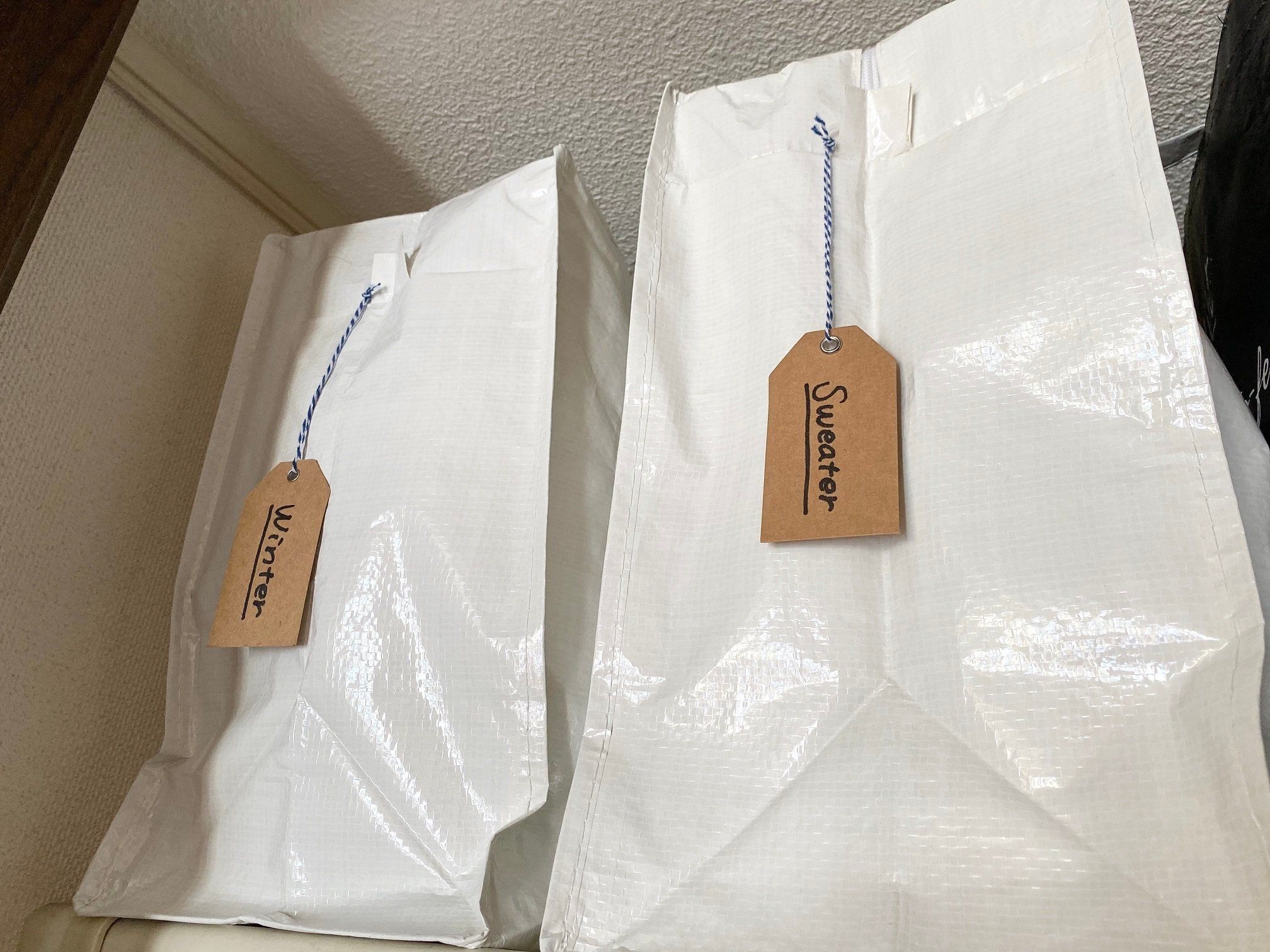 衣替えのときにラベルを変えると気分も変わりますよ。ビニールバッグでのクローゼット収納のご紹介でした。