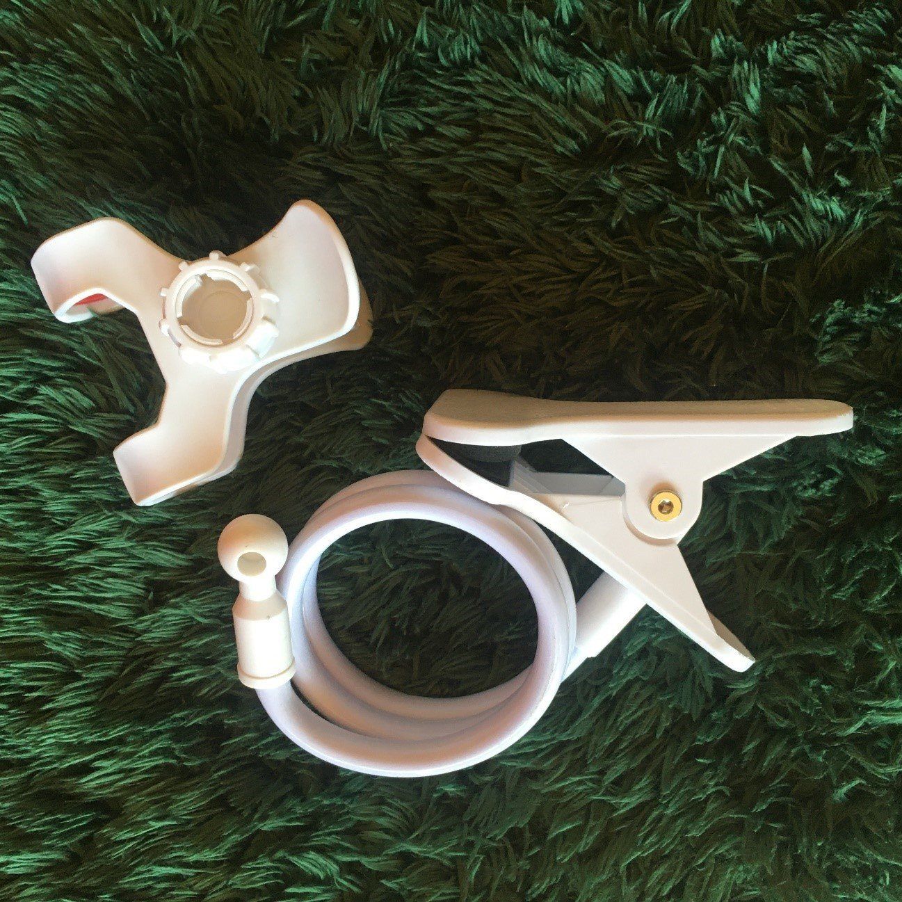 「スマートフォンスタンド」という名前ですが、中に入っているのは、巨大なふたつの洗濯ばさみ?みたいなものと、曲がる棒のようなものだけ。