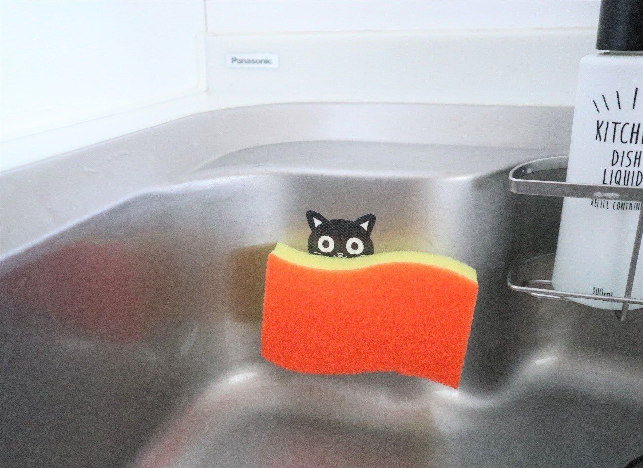 使い方は、とっても簡単。場所を選ばないのでシンクの好きなところにシールをぺたりと貼るだけ。はがしたいときは、簡単にはがすこともでき、跡が残りません。さらに何度も使えるのでそこもポイント高いですよね。裏の粘着面が汚れたら、水または中性洗剤で洗い乾燥させてください。