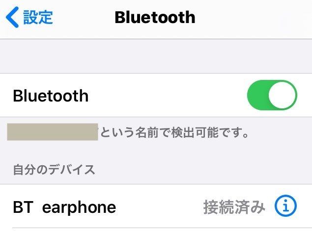 イヤホンの電源を入れて、iPhoneのBluetoothをオンにすると「BT earphone」が現れたので、タップするとすぐに接続されました。