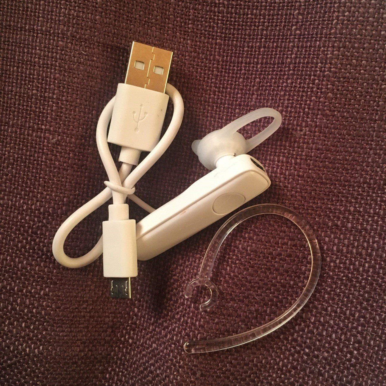 付属品は、本体・耳かけフック・充電ケーブル。