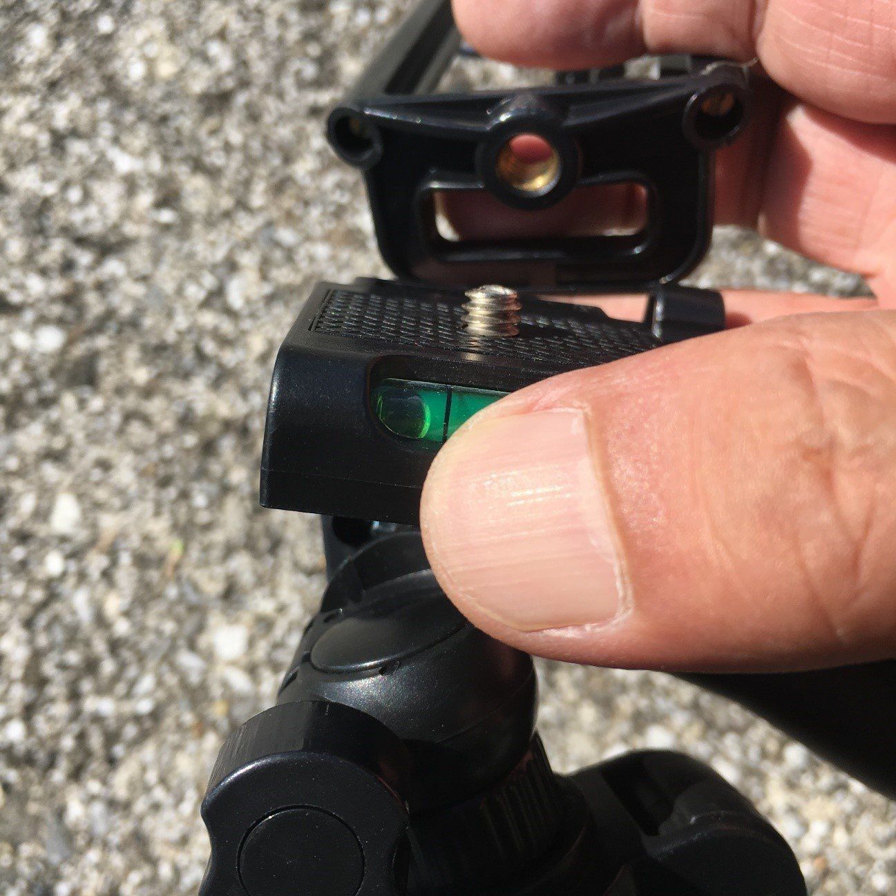あとは足をのばして平らな場所に設置すれば、撮影できるようになります。水平器もついているので、斜めになっていないかの確認も簡単です。