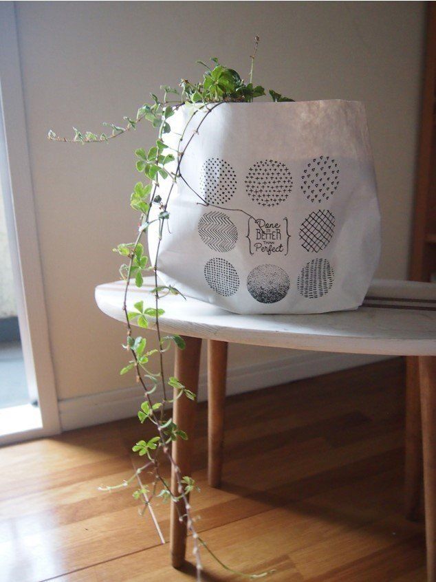 おしゃれなロゴがインテリアにもなじむので鉢カバーとしても使えます。