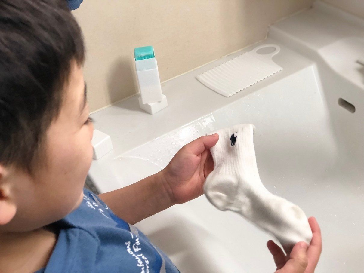 写真のように、ピタッと収まりました。お風呂場や洗面所にこのスティックとミニサイズの洗濯板を置いておけば。あっという間に予洗い完了!で大助かりです。