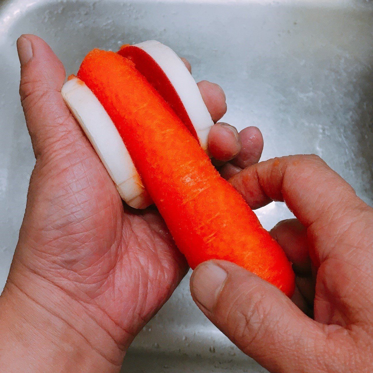 野菜の調理は「①洗って→②皮むきして→③一口サイズに切る」というような手順を踏むのが一般的ですが、「水だけでつるーん野菜の皮むき」を使えば、洗いながら同時に皮むきができます。