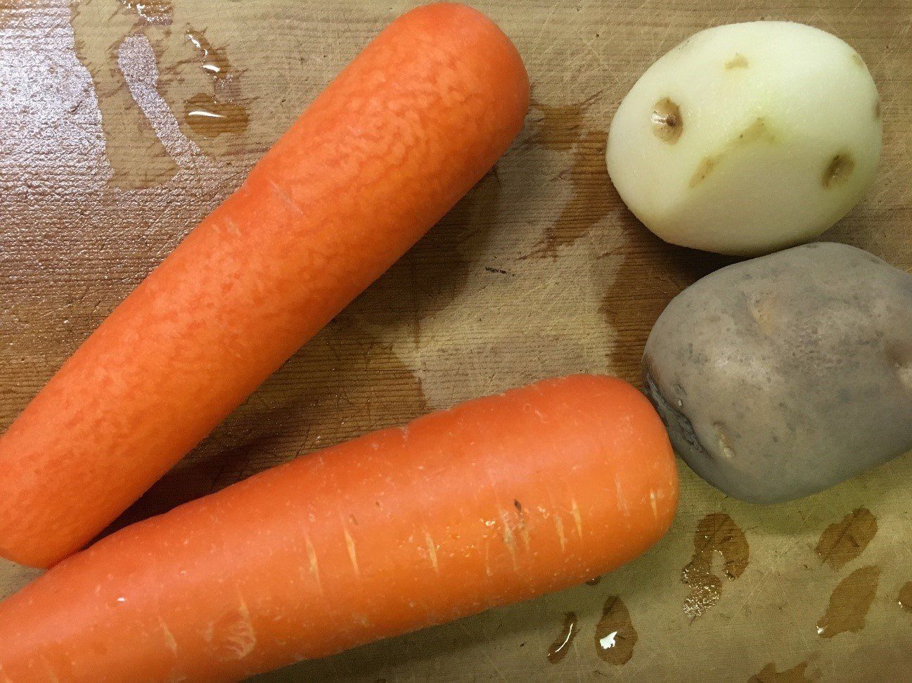 じゃがいも&ニンジンの皮をむいてみた、ビフォアーアフターは写真のとおり。