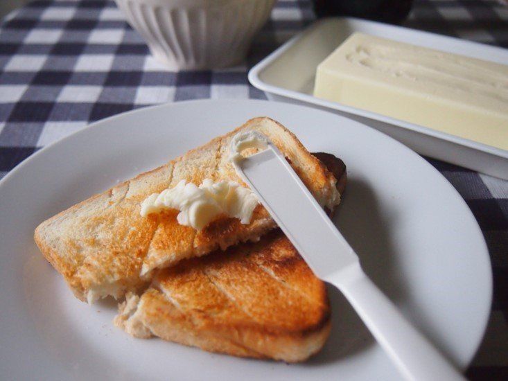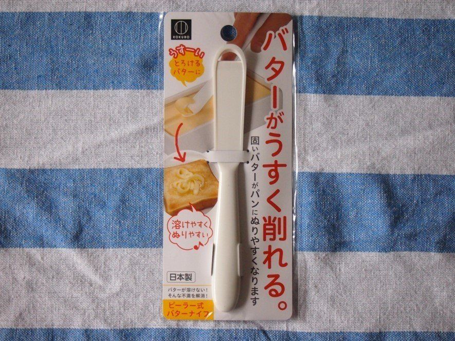 あの固いバターをうすく削って、トーストに塗りやすくしてくれるダイソーのピーラー式バターナイフ100円。これがあればバターが溶けないという不満を解消してくれます!