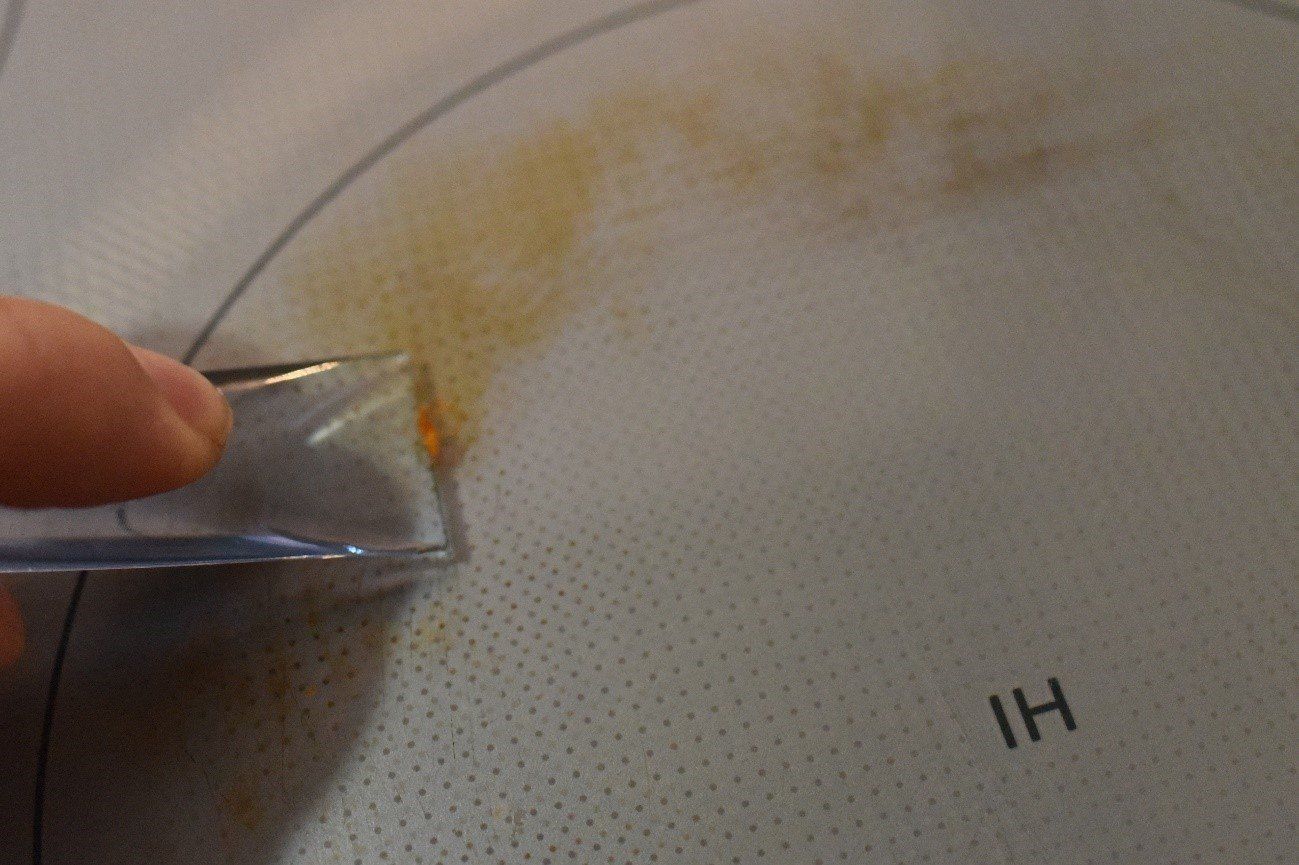 ガラストップの焦げ付きをこそぎ取る