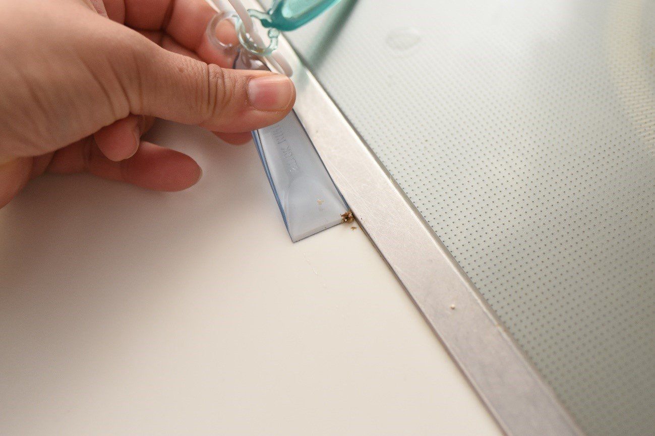 ガラストップを掃除したついでに、天板とIHとの接続部のすき間に、「スクレーパー」の角をスライドさせてお掃除。