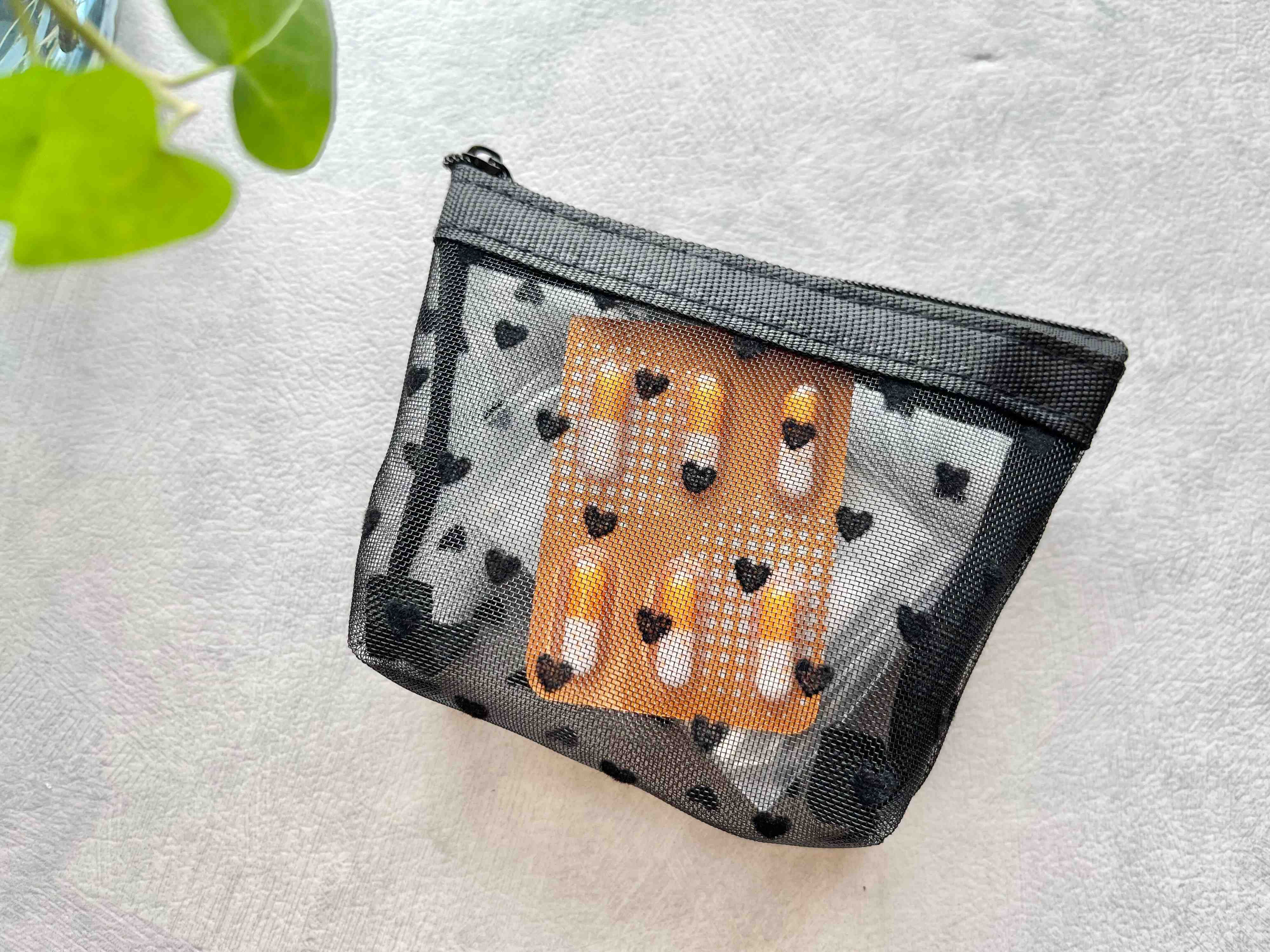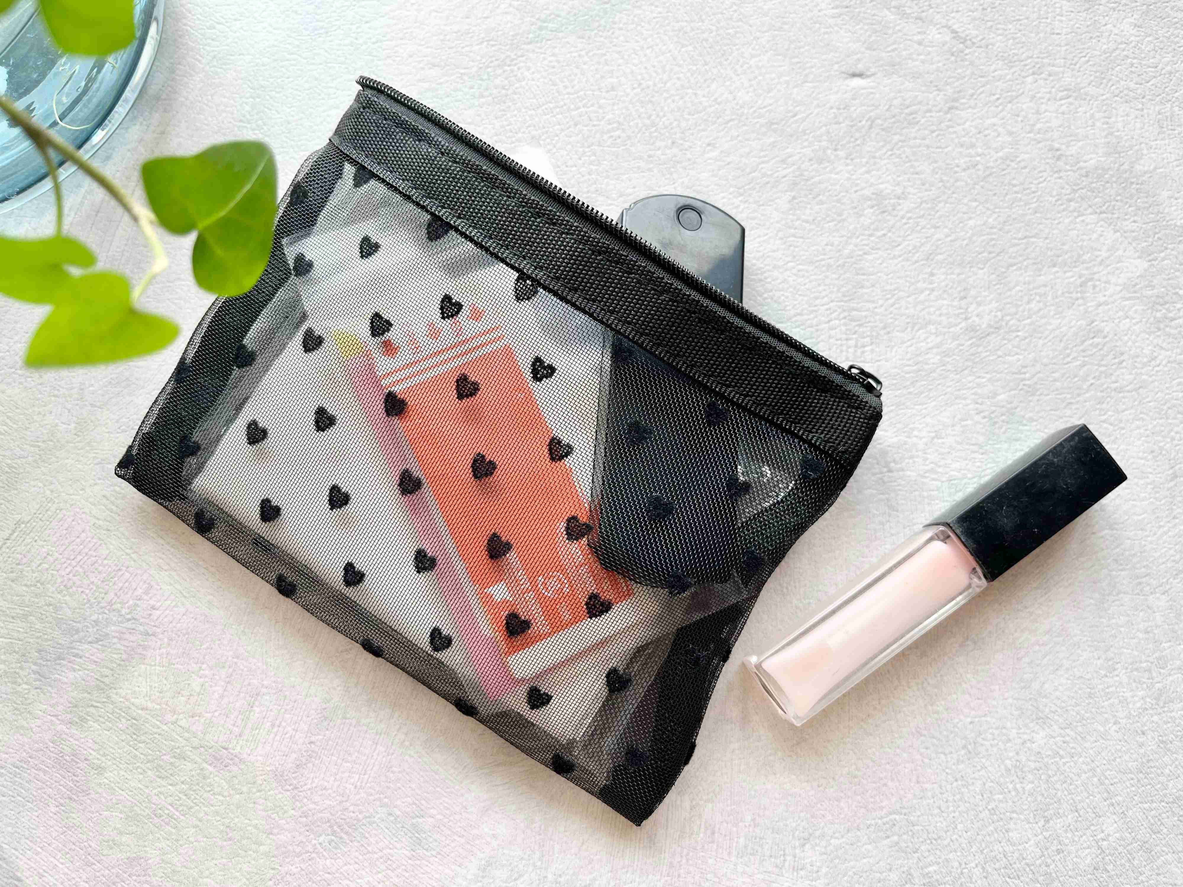 セリアの「シアーハートポーチ」はどちらも使いやすいサイズなので、バッグの中でごちゃごちゃしがちな小物をスッキリ収納するのに便利です。
