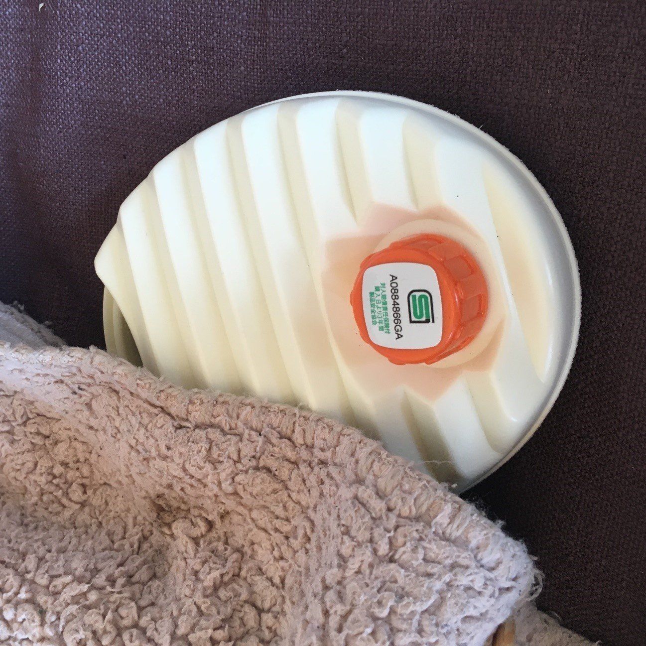 靴下をはいた状態で、足もとに湯たんぽを置くのもおすすめ。デコボコした表面が足裏マッサージのように心地よく、温められて血行がよくなるおかげか、体全体がポカポカしてきます。もしかすると、足湯に近い効果があるのかもしれませんね。