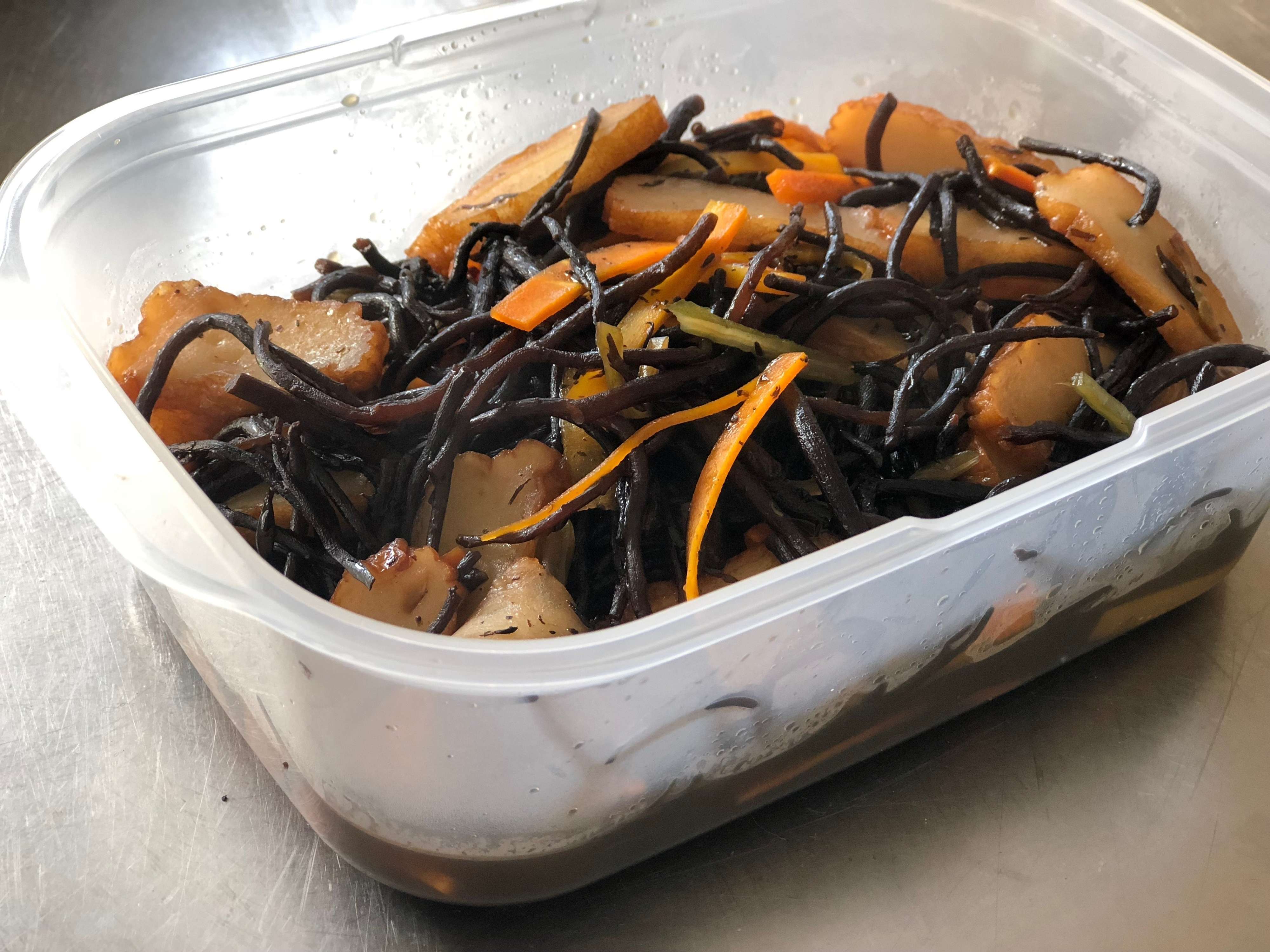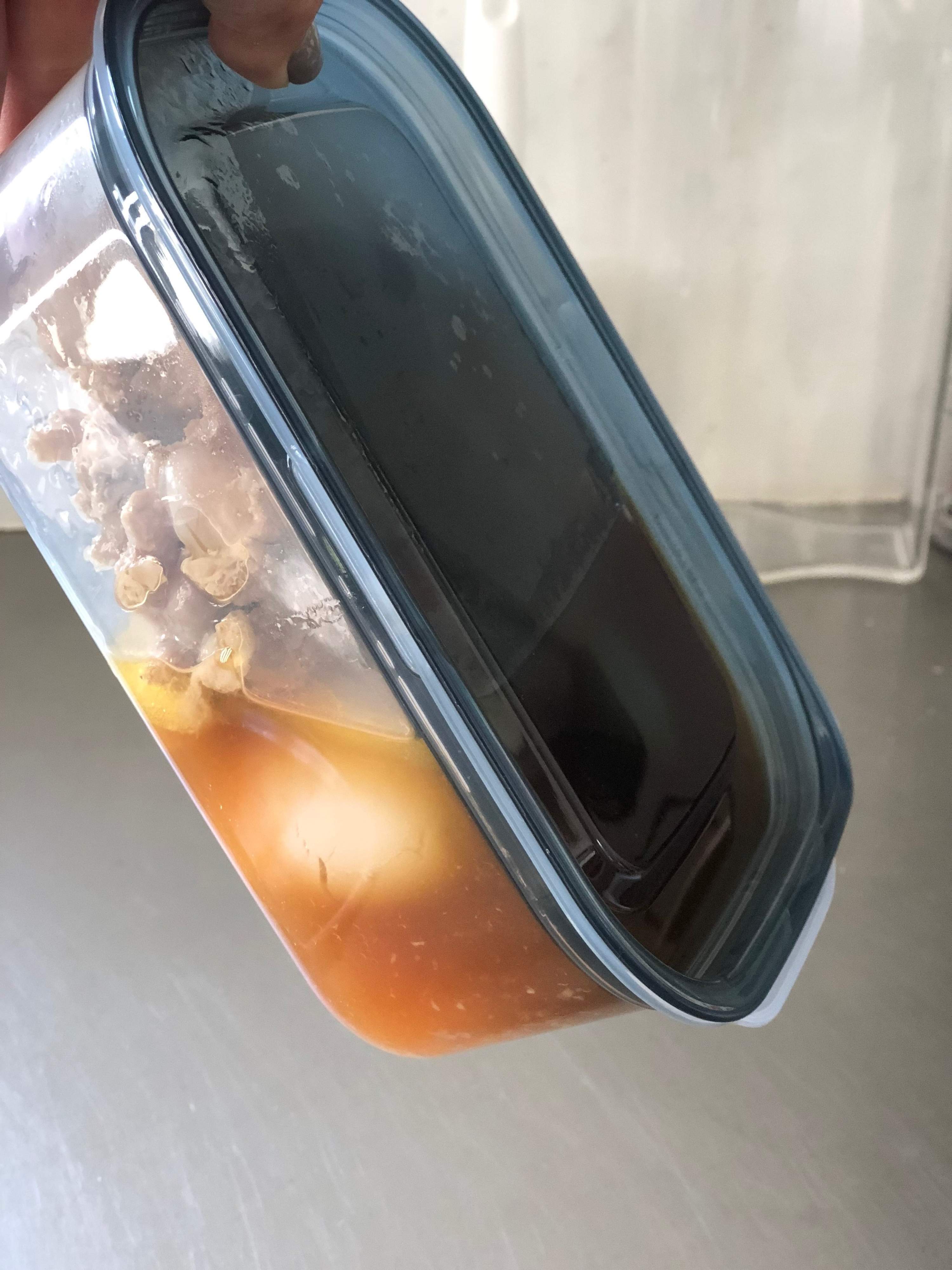 ミゾがないと、ちゃんと密閉されるのか不安に思うかもしれません。でも、心配御無用。写真のように、液体を含む食材を入れて傾けても、液だれしません。