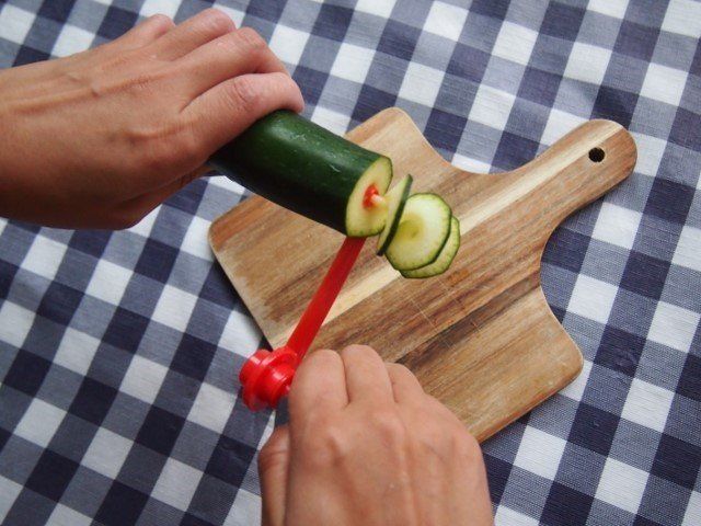 野菜にネジの部分をさして、あとはくるくる回すだけ。