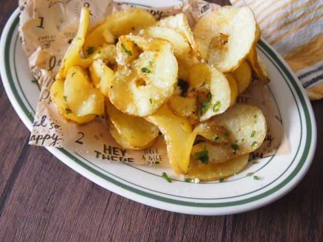 また、串に刺さずそのまま揚げるとブルックリンスタイルの“リボンフライ”の完成。粉チーズとパセリでおめかしを。おしゃれなポテトフライになります。