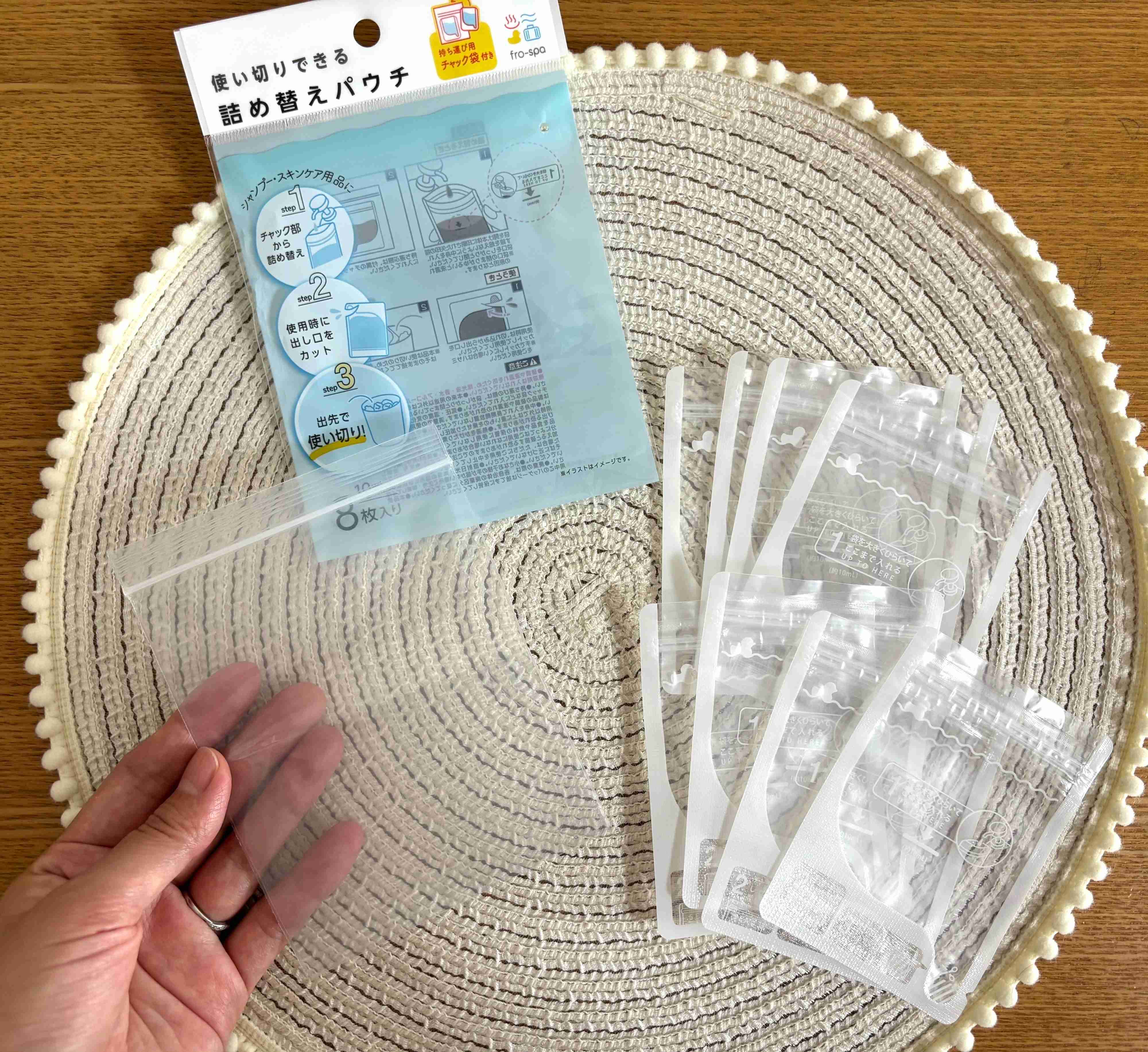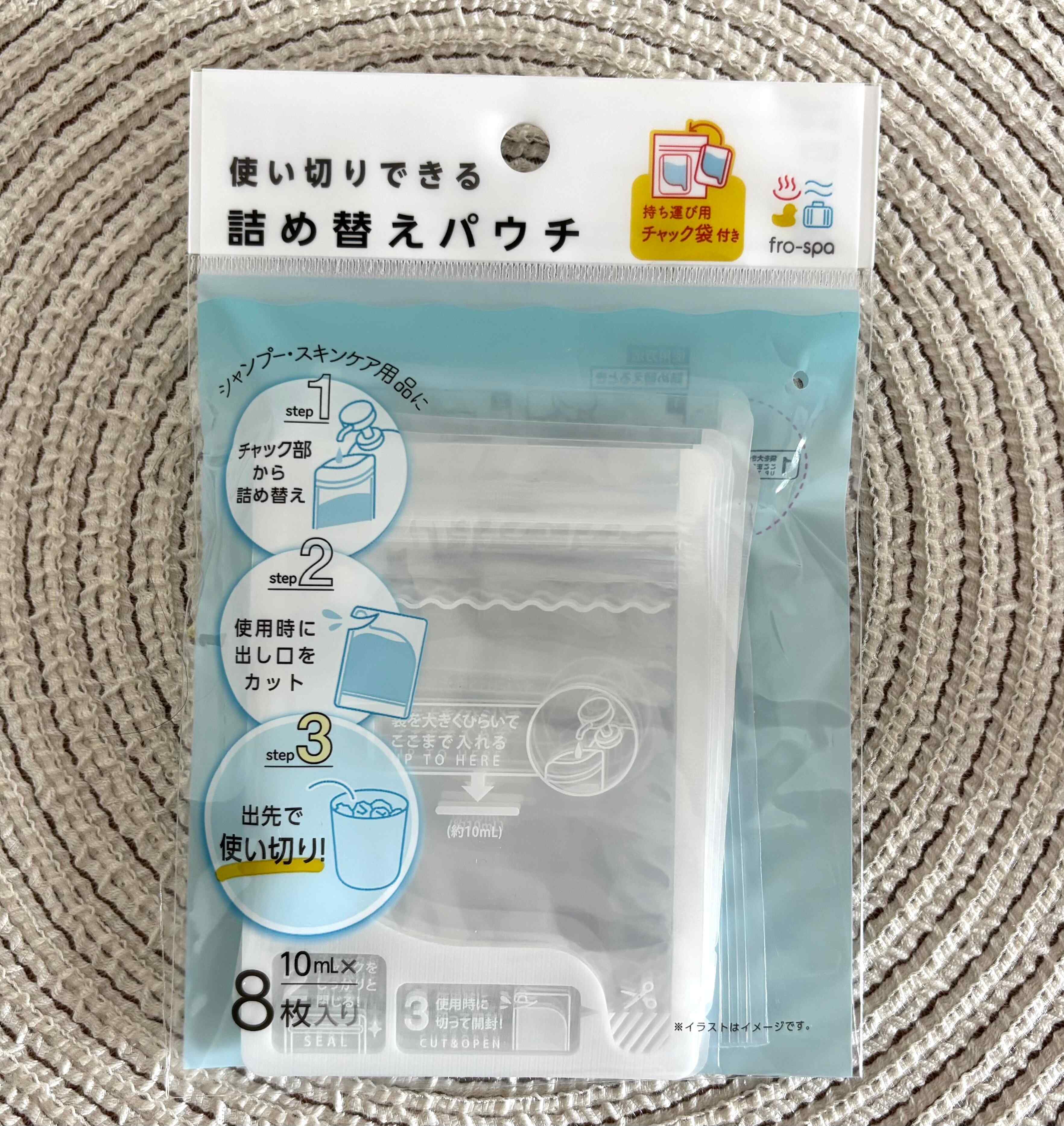 一泊二日などの短期間の旅行にもこちらのチャック付きパウチならちょうどいい量を必要な分だけ持ち運ぶことができますよ。