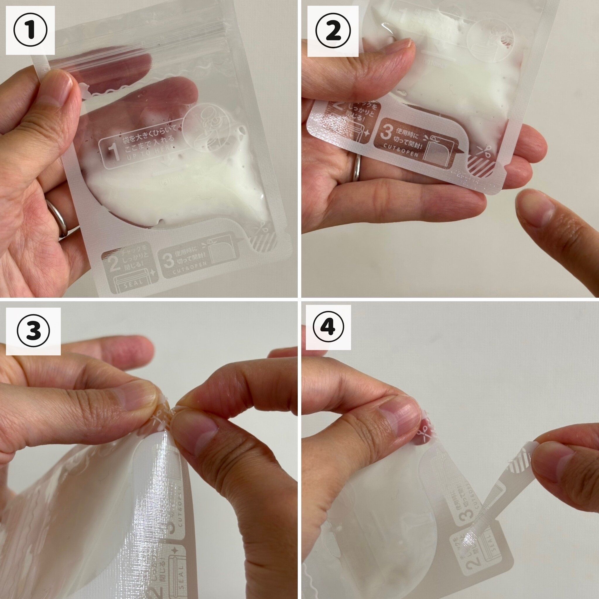 こちらの詰め替えパウチは入れ口を大きく開けることができるので、もったりした重いテクスチャーのクリームなども簡単に入れることができます。