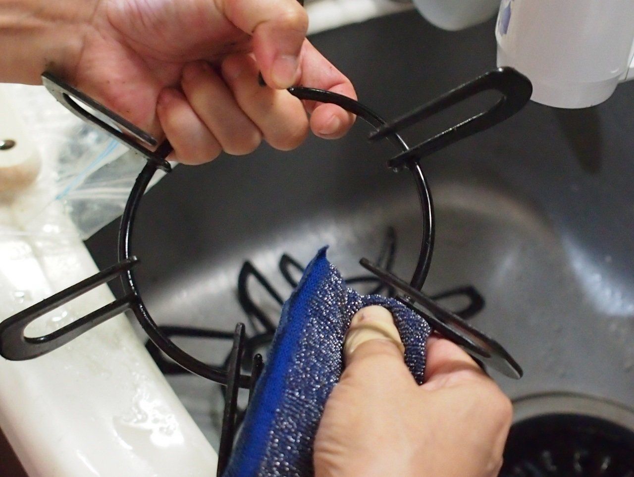 五徳の油汚れは「アルカリ電解水」×袋詰めで落とす!
