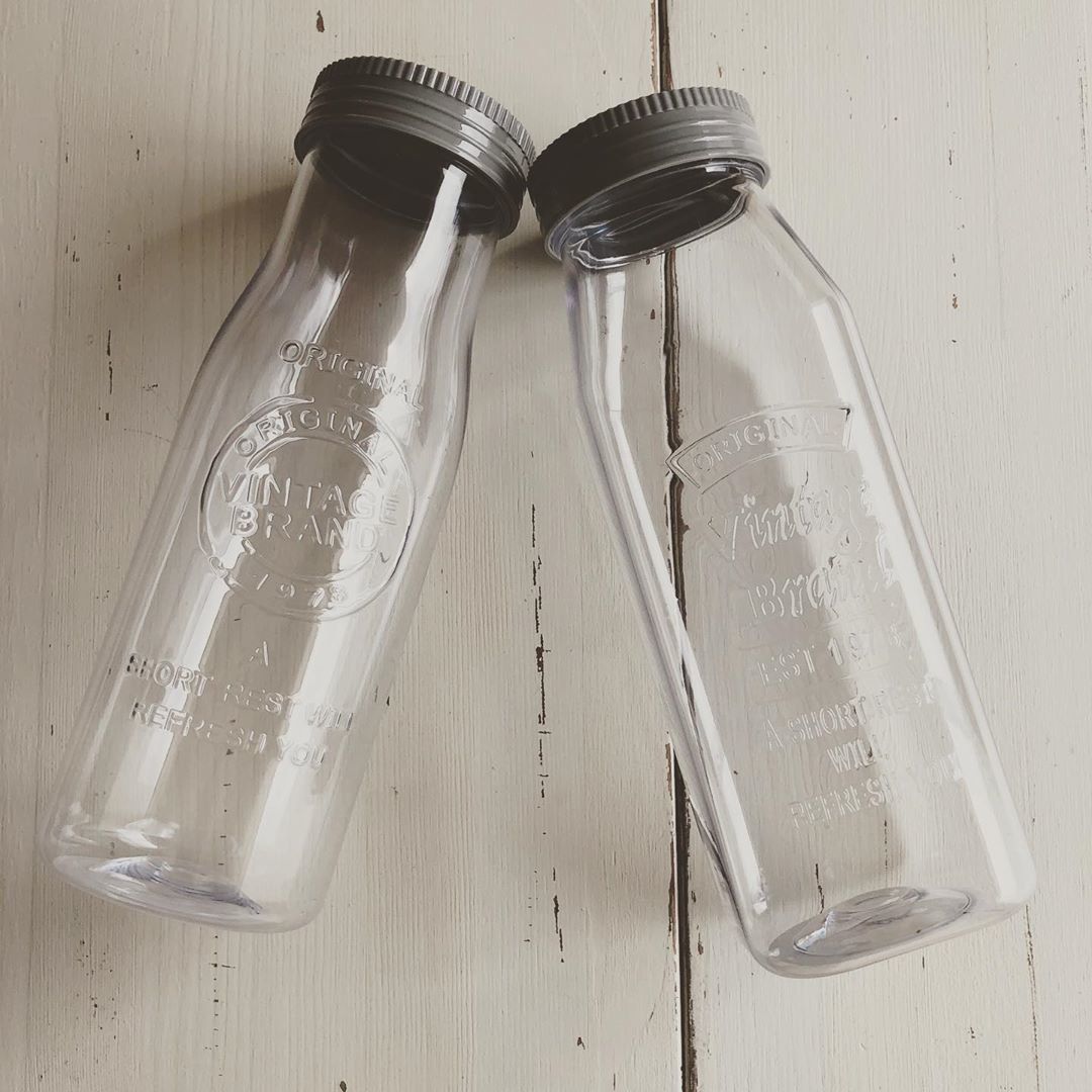 最初にご紹介するのは、ヴィンテージ風のデザインがかわいらしい、「セリア」の「ミルクボトル型保存容器」です。