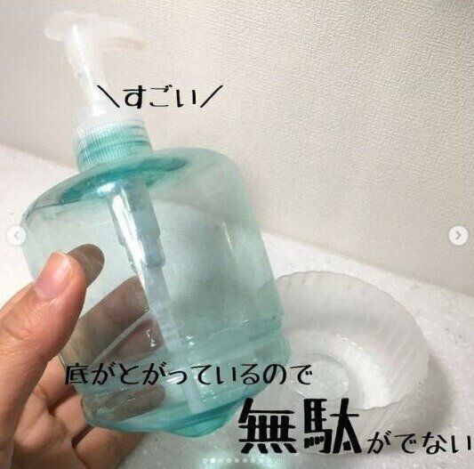 続いてご紹介するのは、一風変わった形状が大きな役割を果たしてくれる「セリア」の「ハンドソープボトル」です。