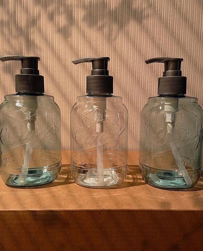 薄く色づいた透明のボトルはおしゃれなロゴ入りで、カフェのような雰囲気を醸し出してくれます。小さすぎないサイズであるため、ハンドソープだけではなく、シャンプー類にも使えます。