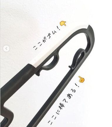 こちらのハンガーは、肩の部分に滑り止めがついていて、かけた服が滑りにくいんです。